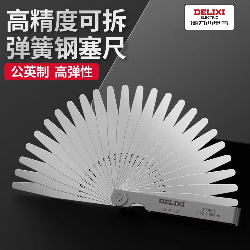 德力西电气塞尺间隙锥形径规厚薄楔型量具公英制弹簧钢塞尺32片