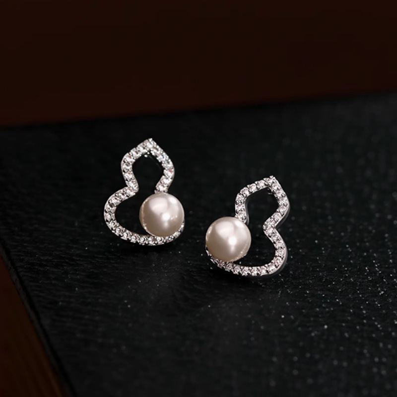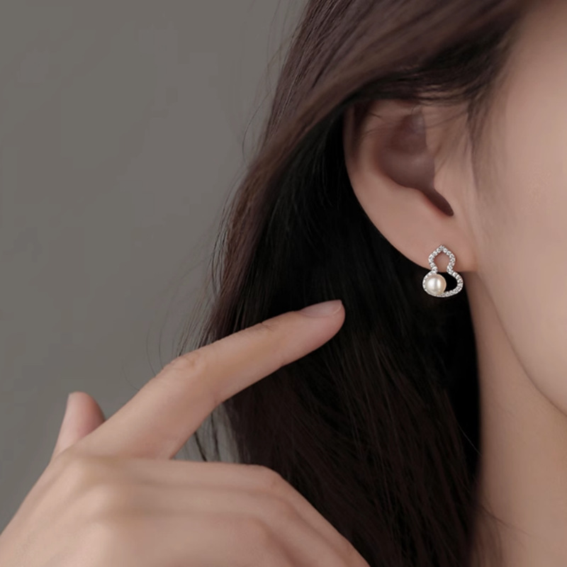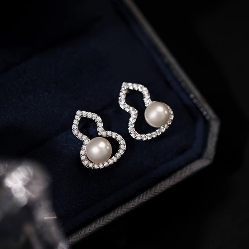 喜飾銀匠999純銀つる真珠イヤリング小香風耳輪高級感復古フランス巻き耳ボタン