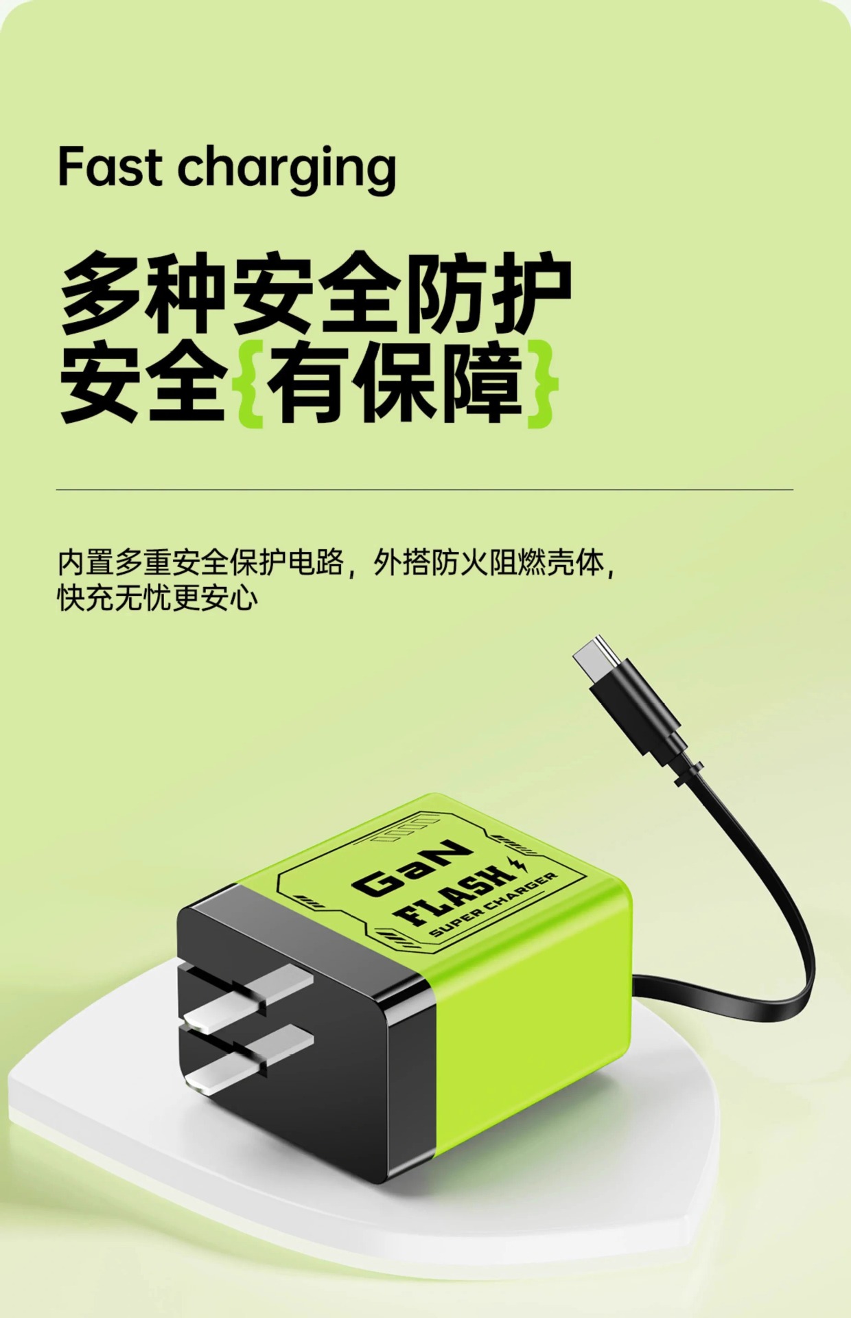 美规中规欧规氮化镓充电器超级快充伸缩数据线Typec120W充电头