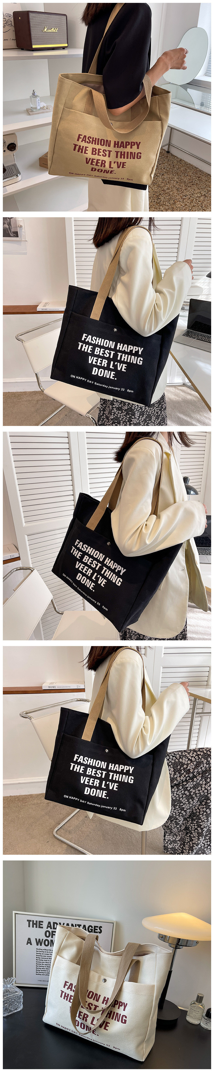 通勤文学日本語レター大容量トートバッグ学生スクールバッグ多用途スクエアショルダーキャンバスバッグ女性用