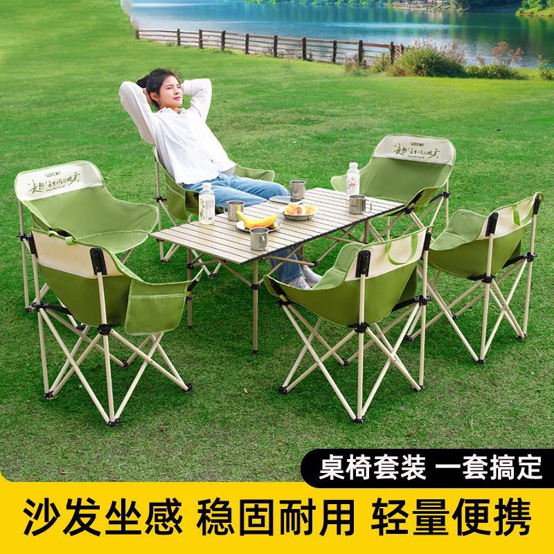 アウトドア折りたたみテーブルと椅子セットムーンチェアポータブルキャンプエッグロールテーブルと椅子ピクニックキャンプフルセットの装備