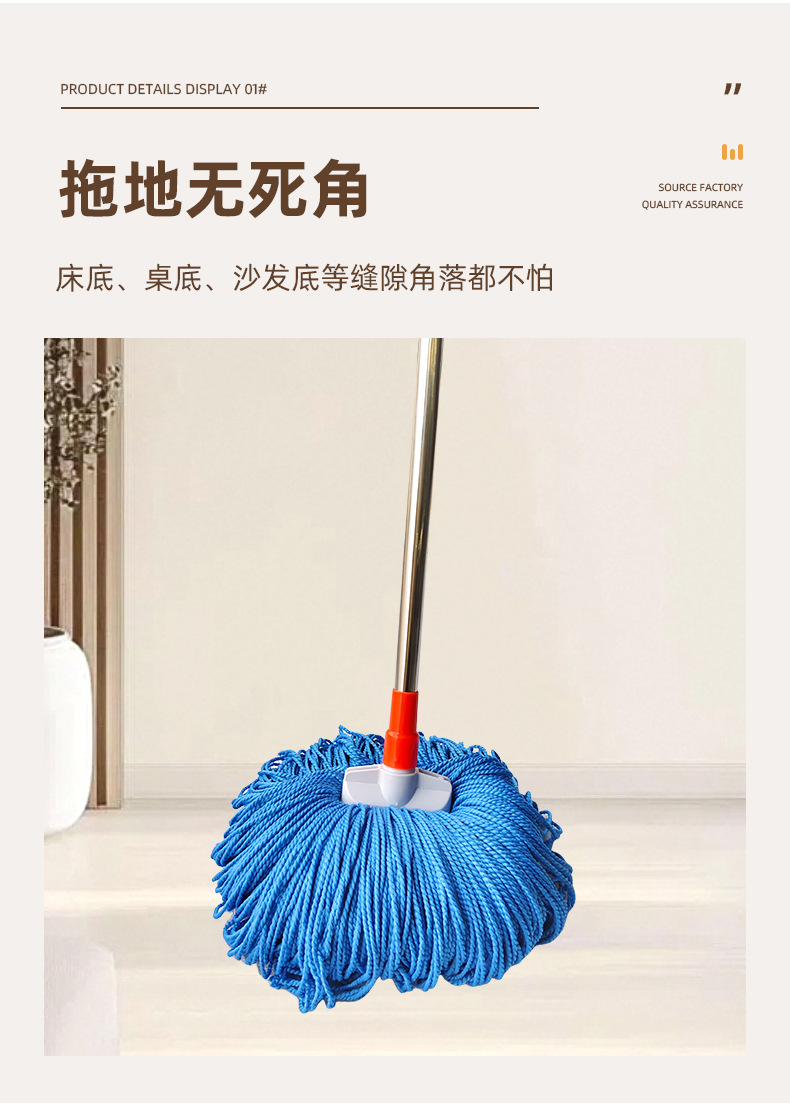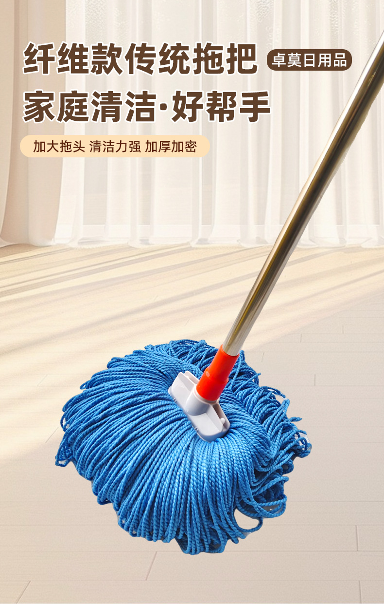 跡が残らない紐モップ 家庭用 ワンタッチできれいに 老式家庭用繊維モップ 乾湿両用 吸水モップ