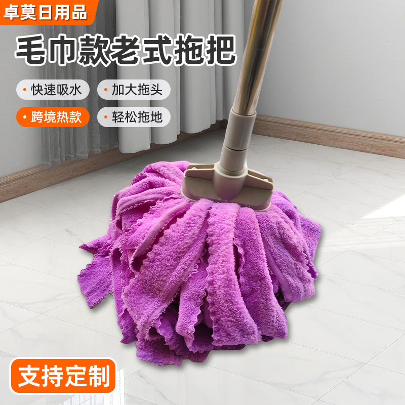 タオルコーラルベルベットモップ増粘吸水性伝統的な昔ながらの丸頭平頭モップステンレス鋼ロッドモップ速乾性