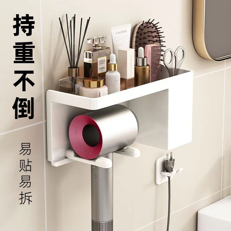 ✅ 国境を越えた新製品厚みのある二層パンチフリーフック付きヘアドライヤー収納ラック壁掛け浴室ヘアドライヤー収納