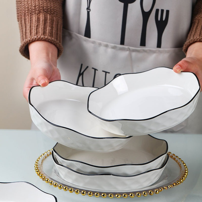 8インチ皿料理皿家庭用陶磁器の新しいシンプルなアイデア果物深皿セット食器個性セット