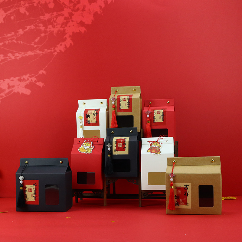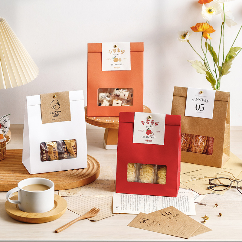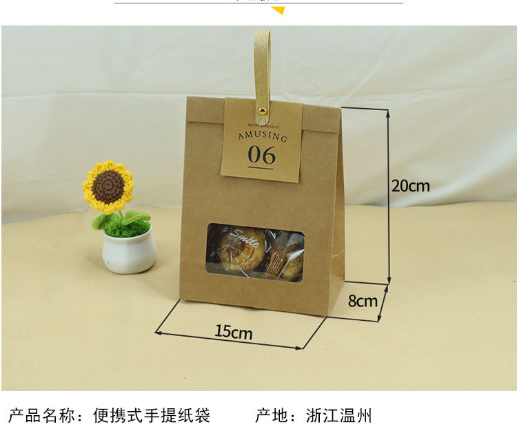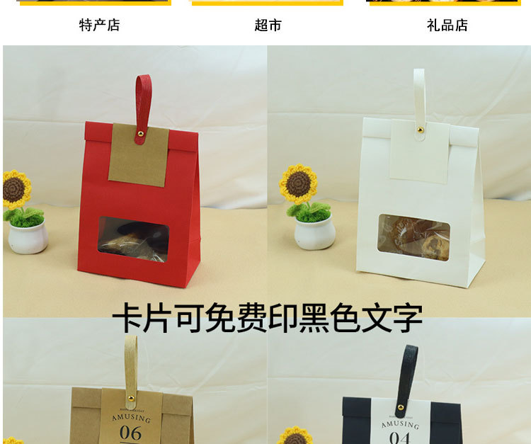 新しいインスタイルのお土産ボックスポータブル紙袋自立袋窓ベーキング包装袋紙箱茶ギフト