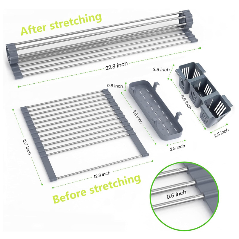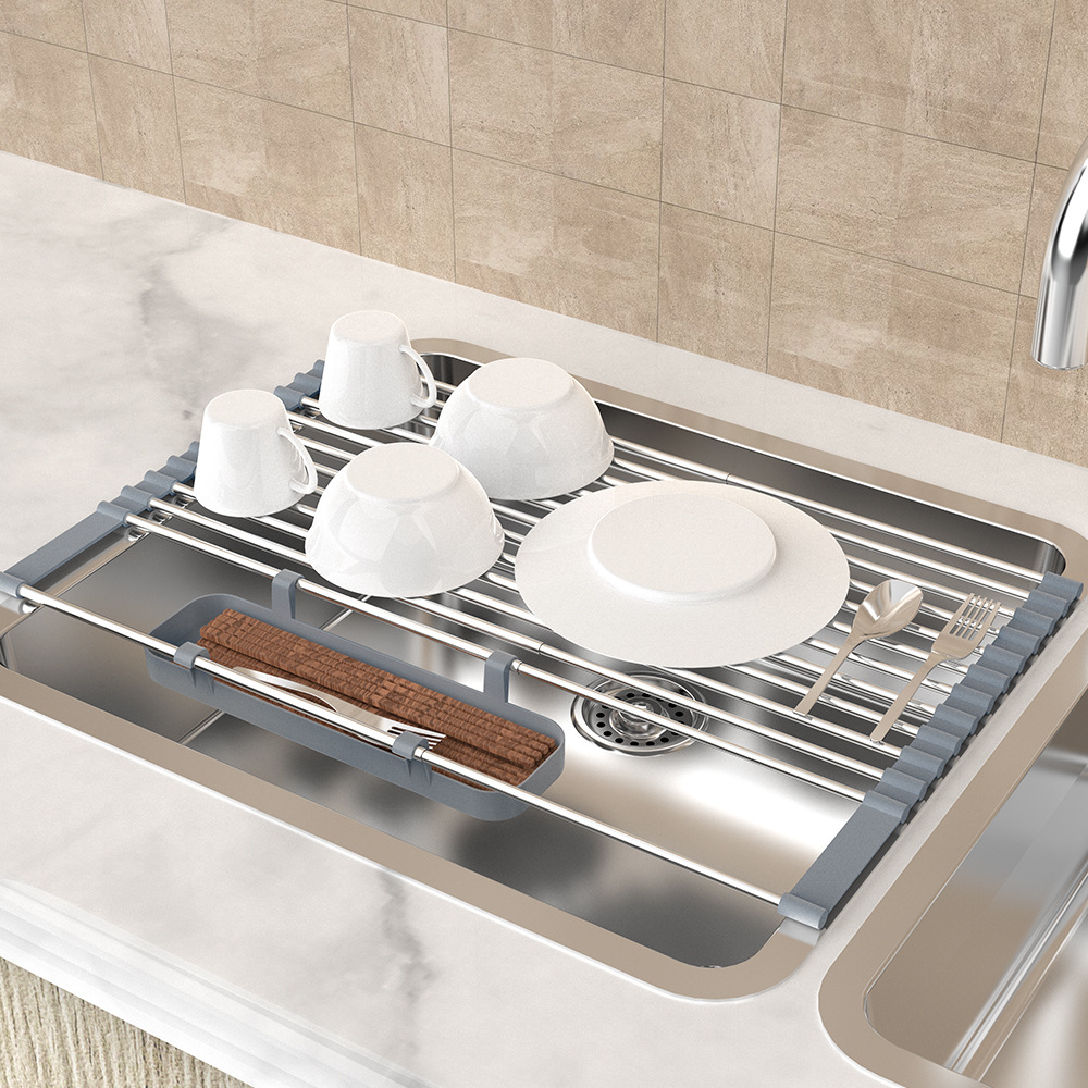 ステンレス鋼のキッチン伸縮式水切りラックキッチンナイフとフォークカップ水切りラック果物と野菜のプレート収納ラック