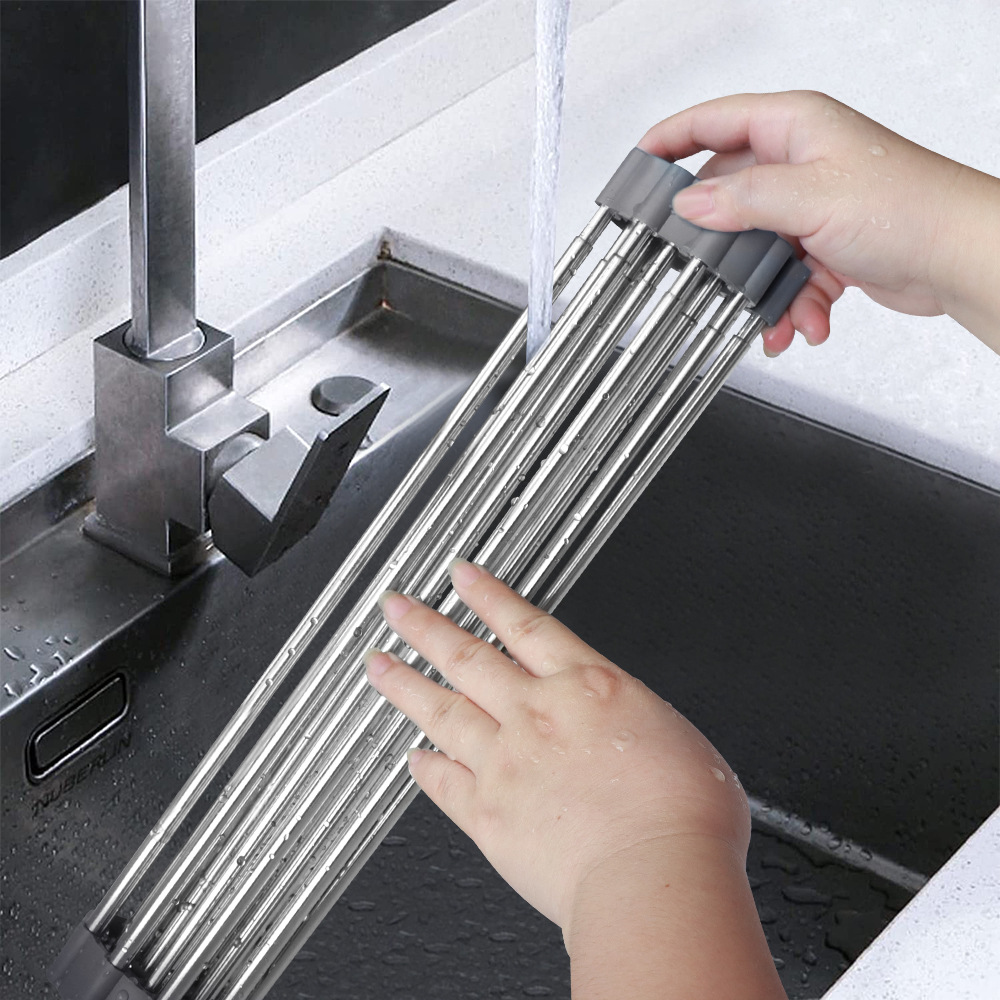 台所の伸縮ステンレス製の水切り棚の水槽の果物と野菜のローラーの水切り棚の折り畳み式の家庭用の碗の皿のコップの棚
