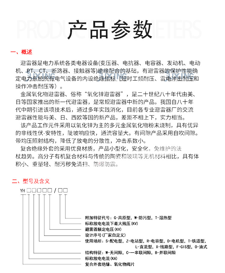 配電型10KV酸化亜鉛避雷器HY5WS-17-50L高圧酸化亜鉛避雷器脱離器付き