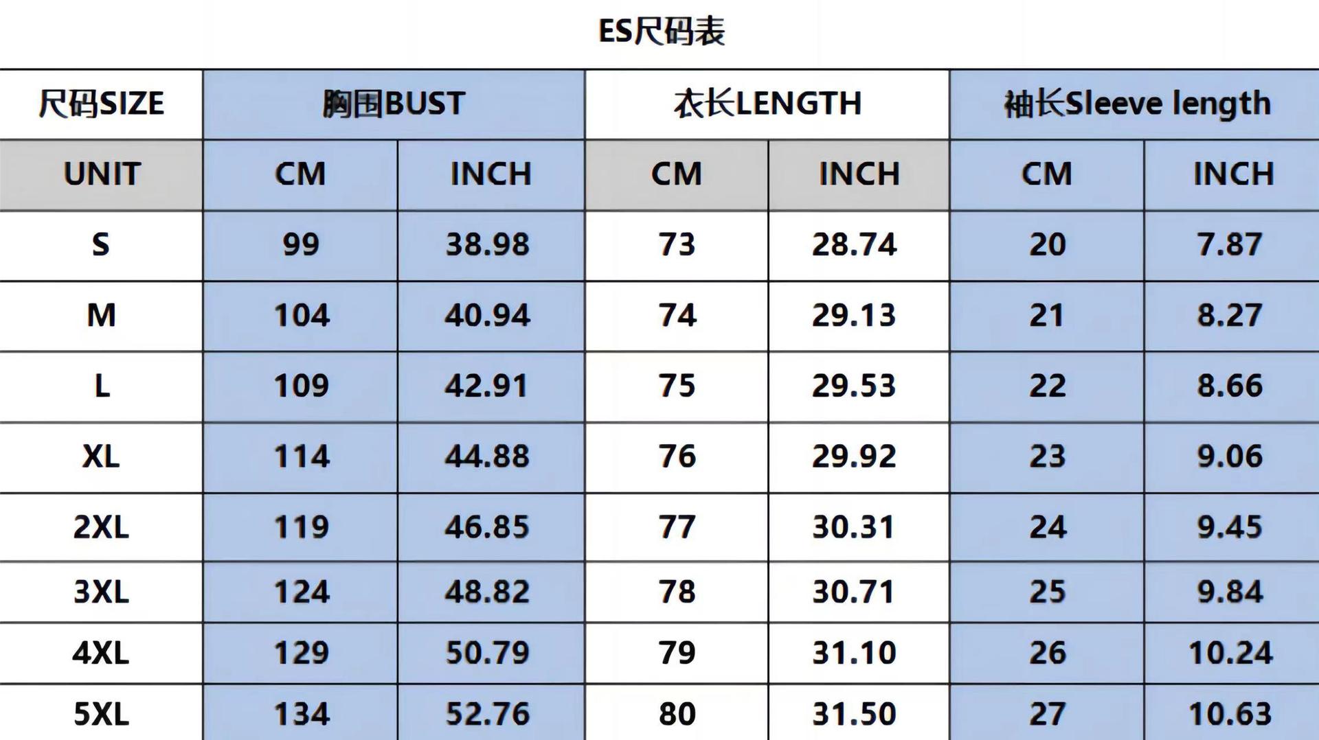 尺码 S,M,L,XL,2XL,3XL,4XL,5XL