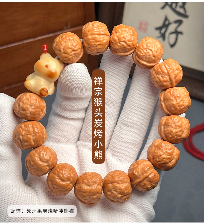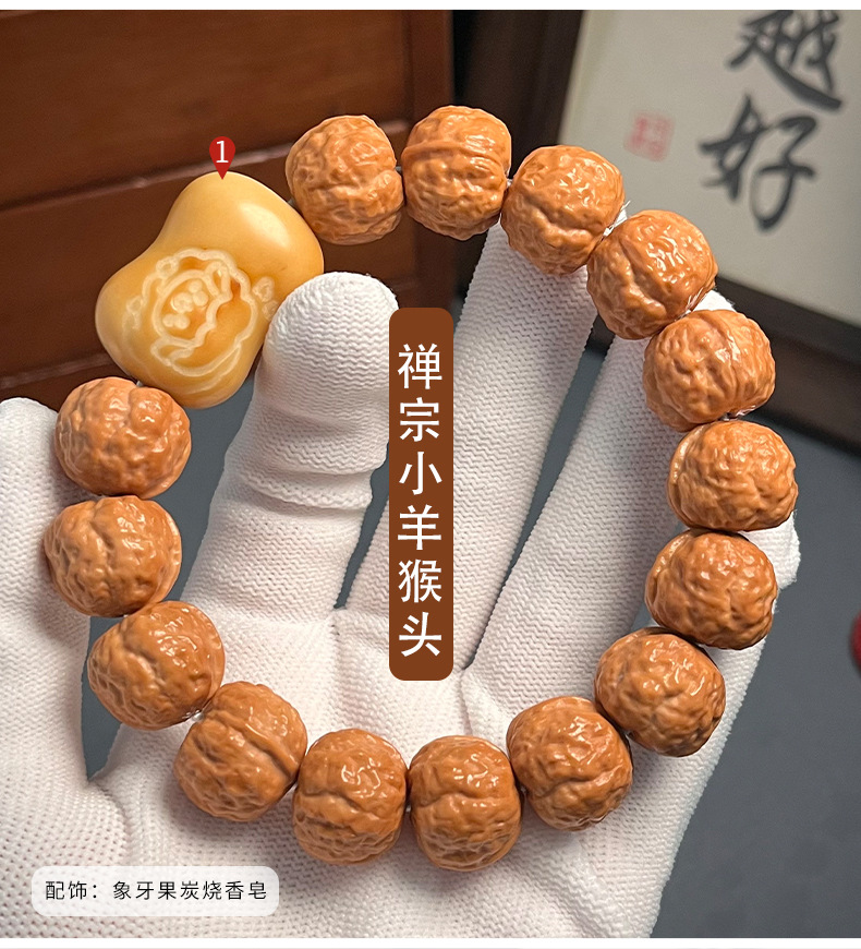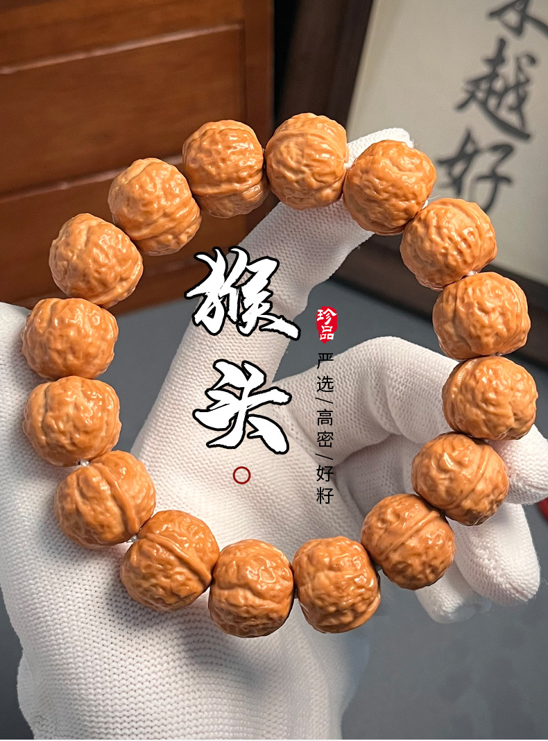 龙蛇之变猴头手串原皮原色精雕猴头单圈核桃文玩佛珠念珠手链批发