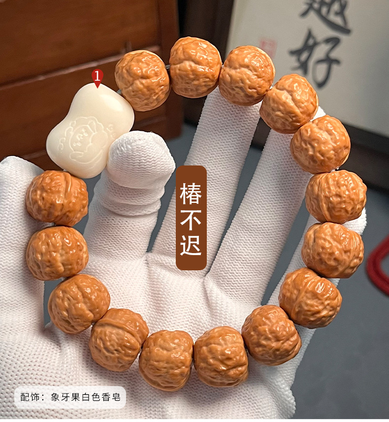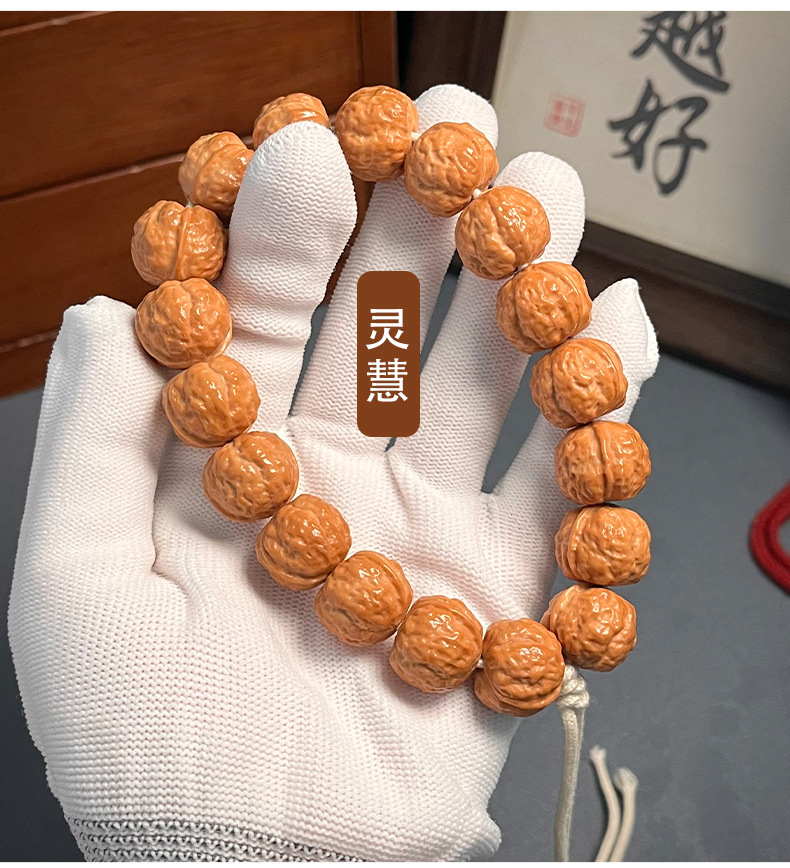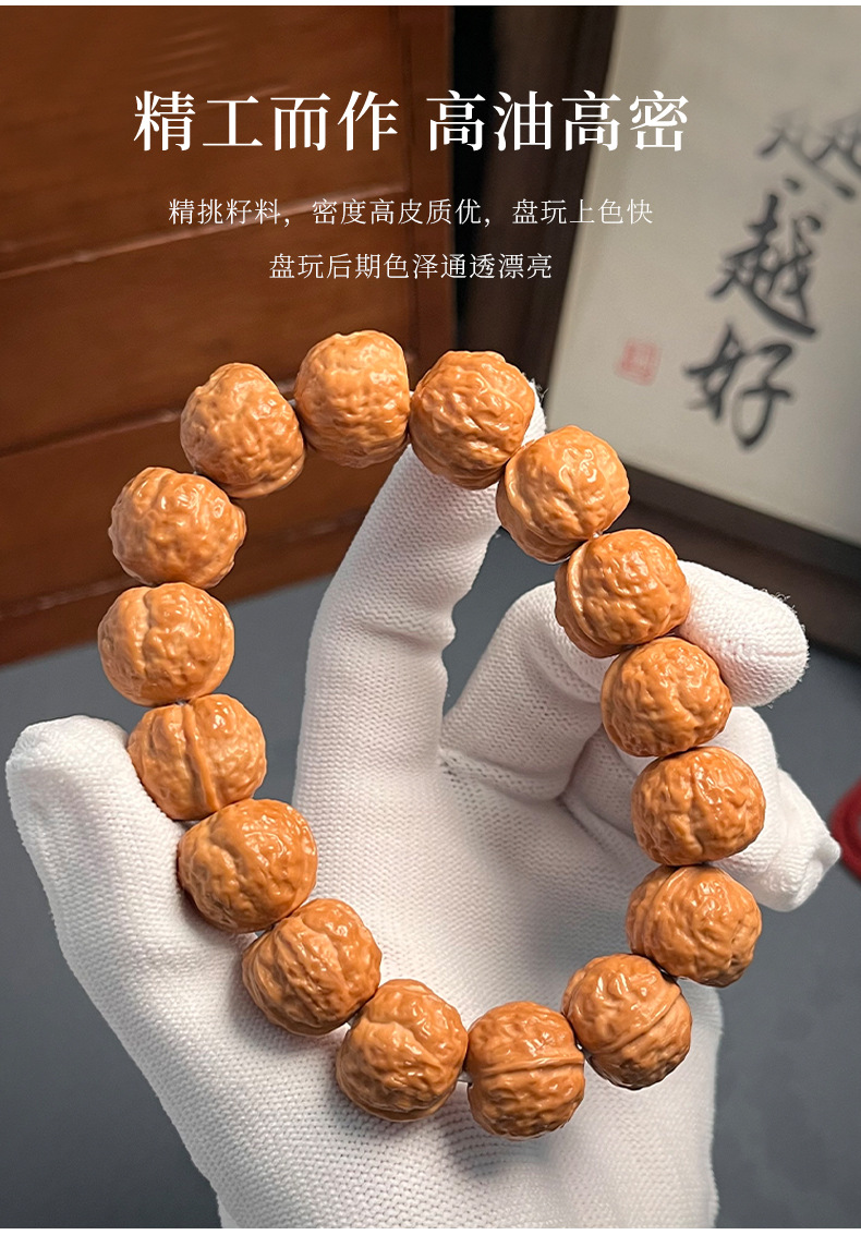 天然インドネシア樹王爆肉小金剛菩提手串男盤は元の種のクルミの文を遊んで仏珠を遊んでブレスレットを持ちます。