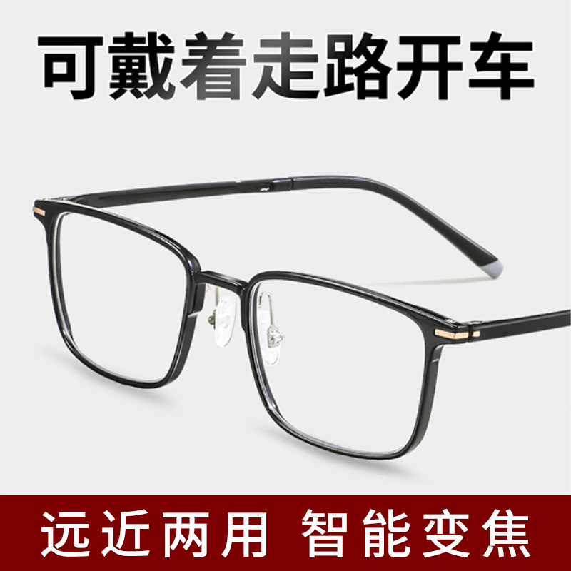 高档防雾防蓝光老花镜男远中近三用自动调节度数高清渐进多焦点镜