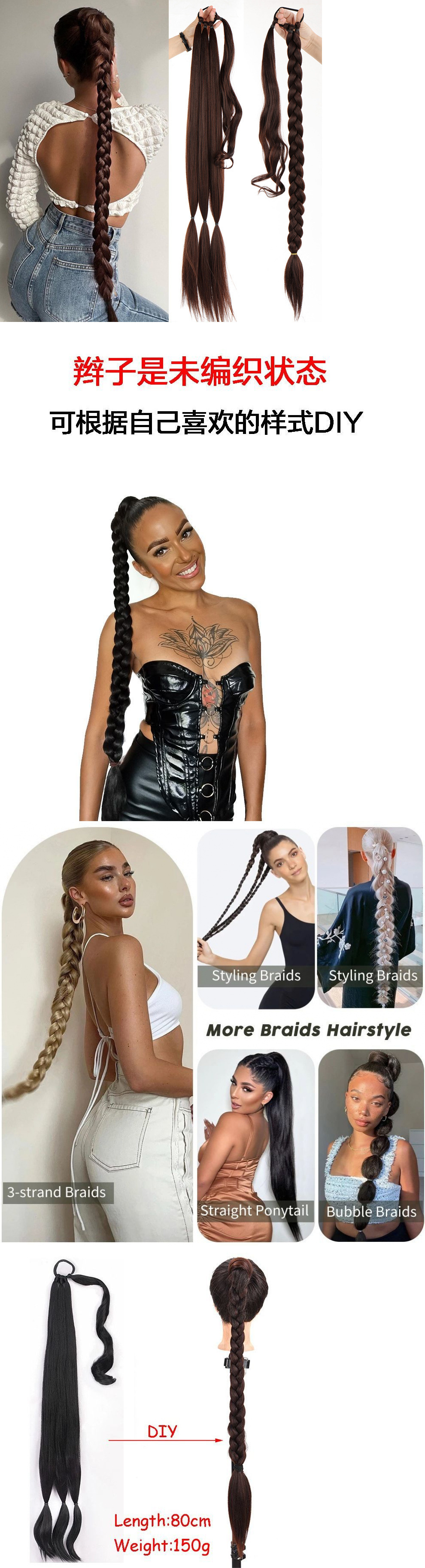 超長く太い三つ編みポニーテールウィッグ、大きな三つ編みストラップ付き、インターネットセレブ写真撮影、ハイシミュレーションウィッグ、マット
