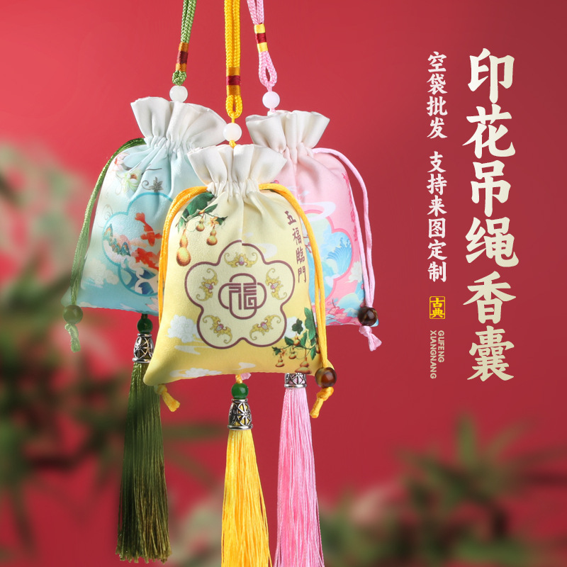中国風青花麻布袋田園花布袋空香嚢束ポケット種子包装袋アクセサリー収納布袋