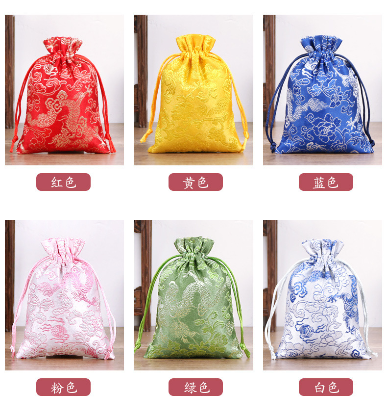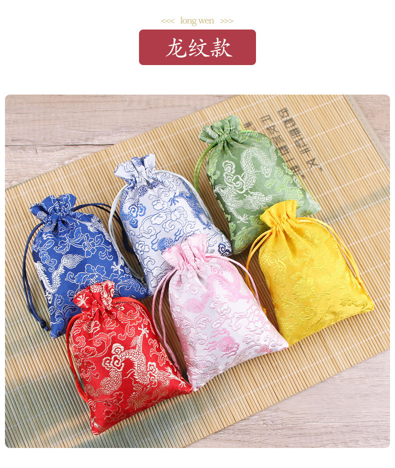 アクセサリー収納袋龍紋サテン小布袋錦袋レトロ中国風ジュエリーバッグ引き紐ポケット