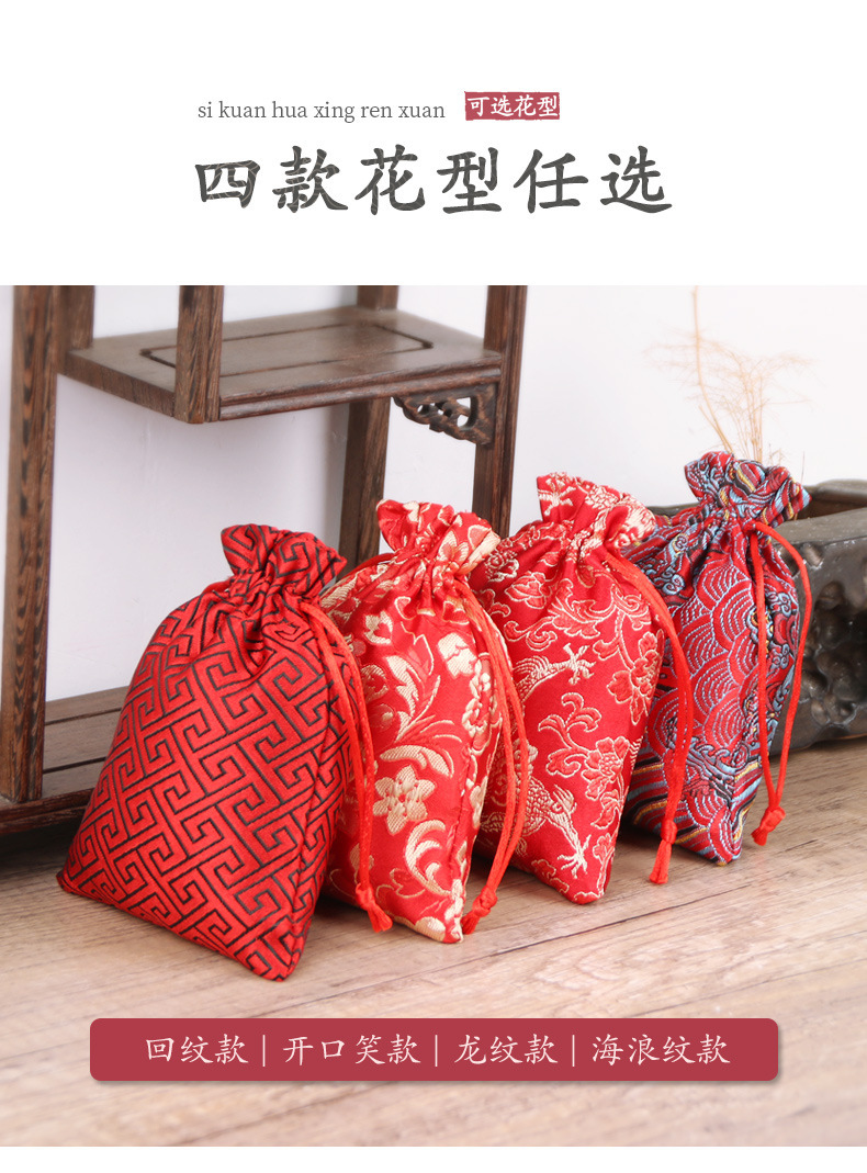 中式海水纹锦缎布束口袋复古珠宝饰品透气包装袋红色抽绳首饰袋