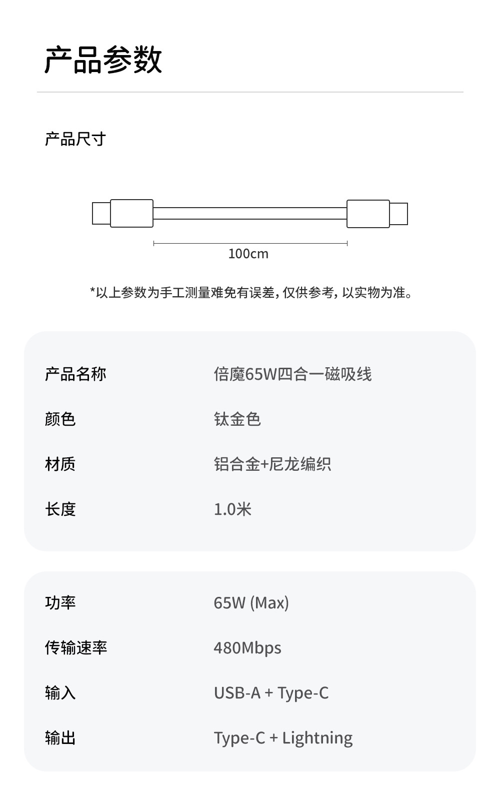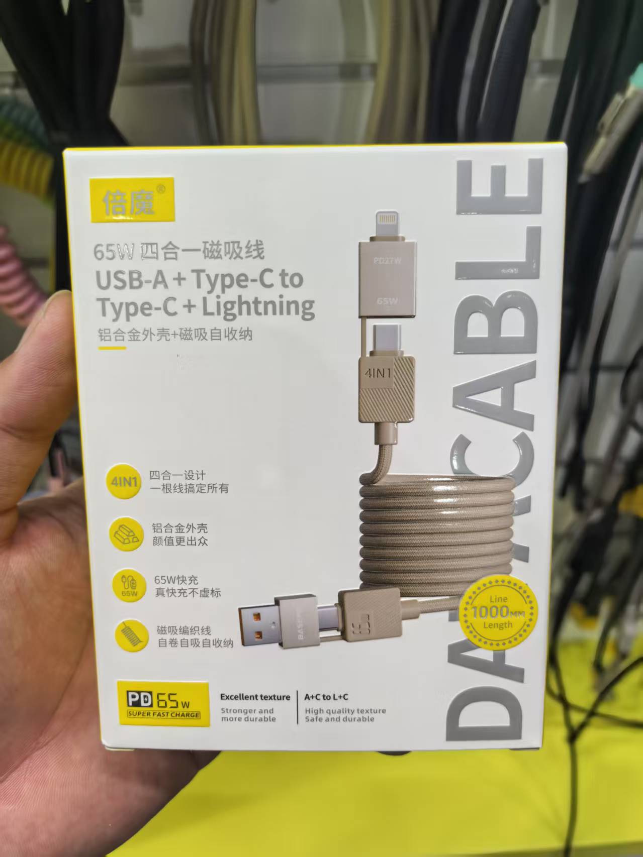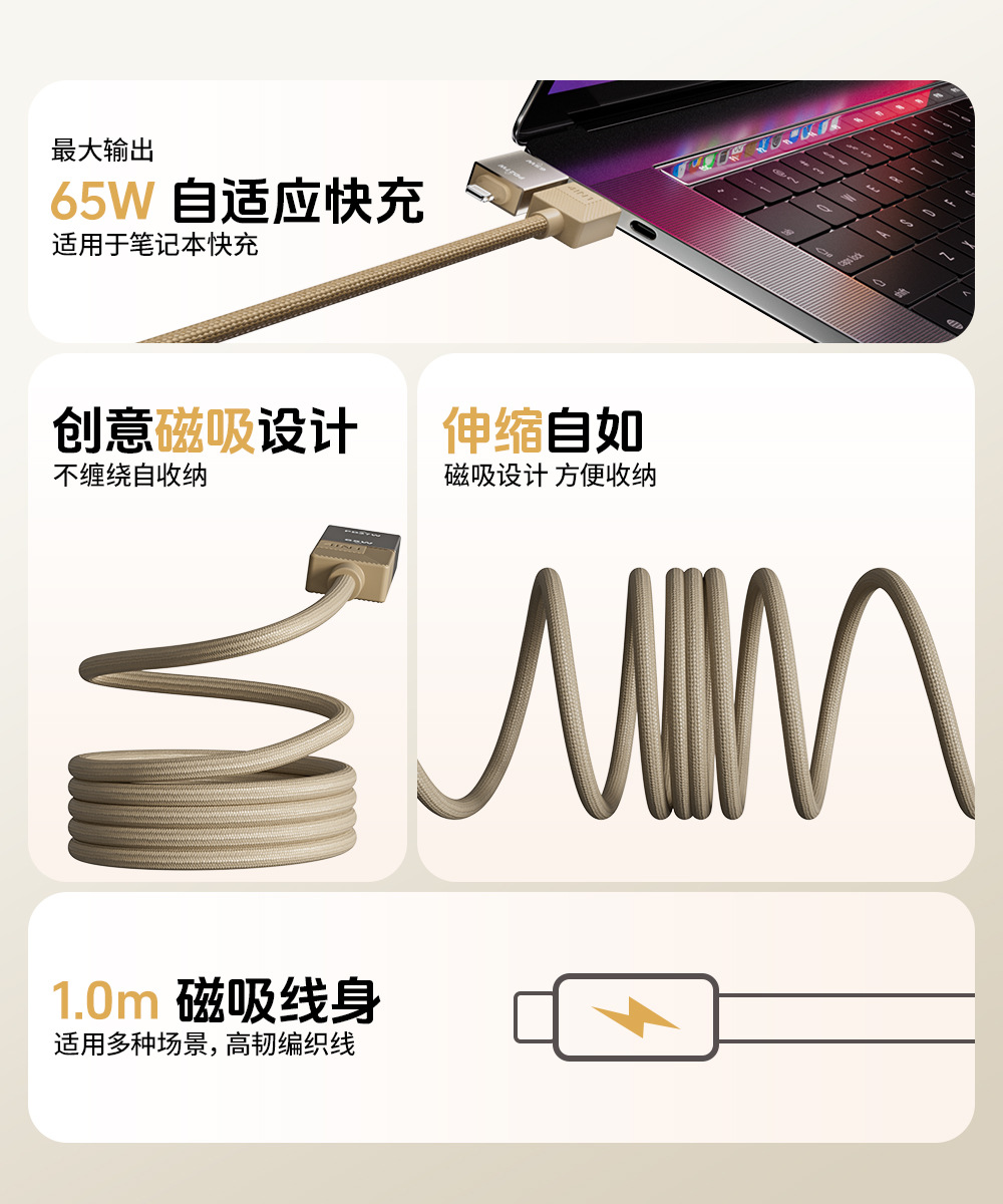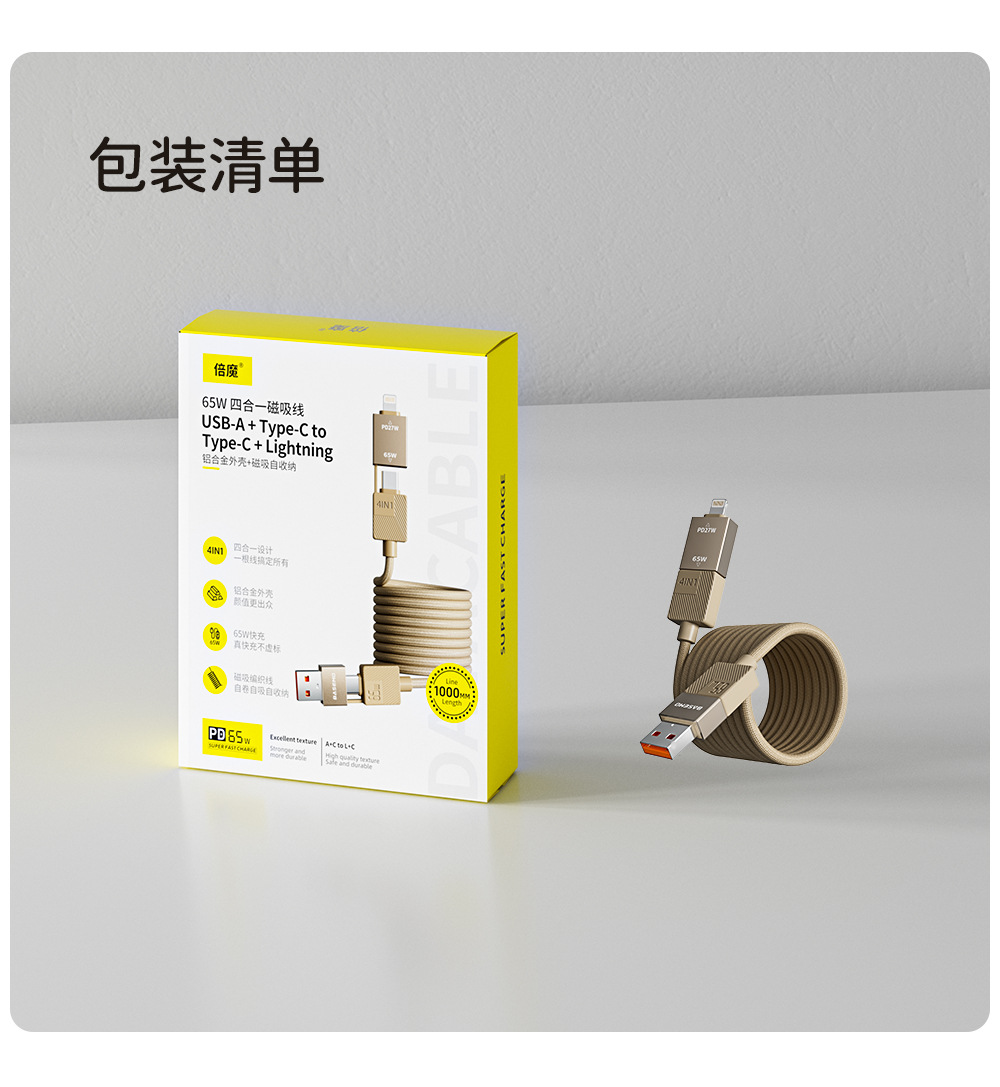 【实力工厂】倍魔240W大功率四合一磁吸收纳数据线超级快充编织线