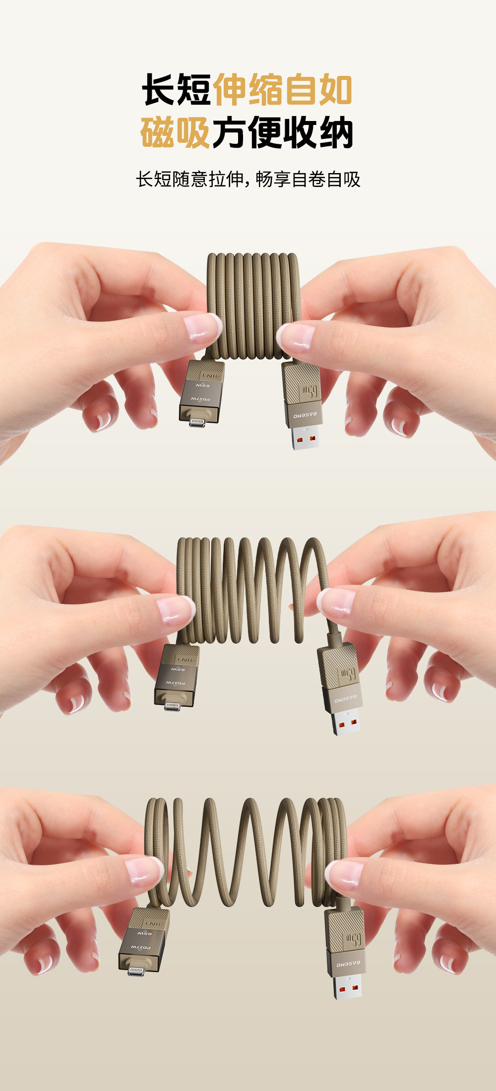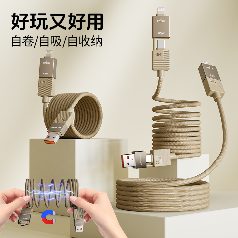 【TK人気商品高品質】Beimo 65+27W スプリング式4in1急速充電ケーブル Apple/Huawei対応データケーブル