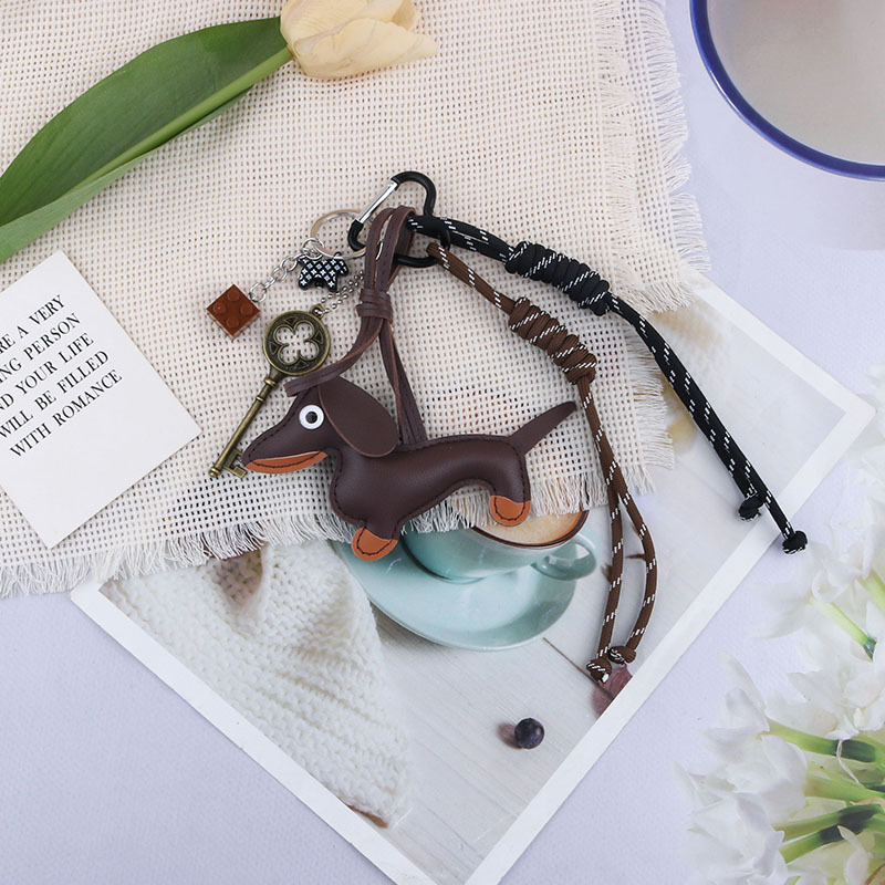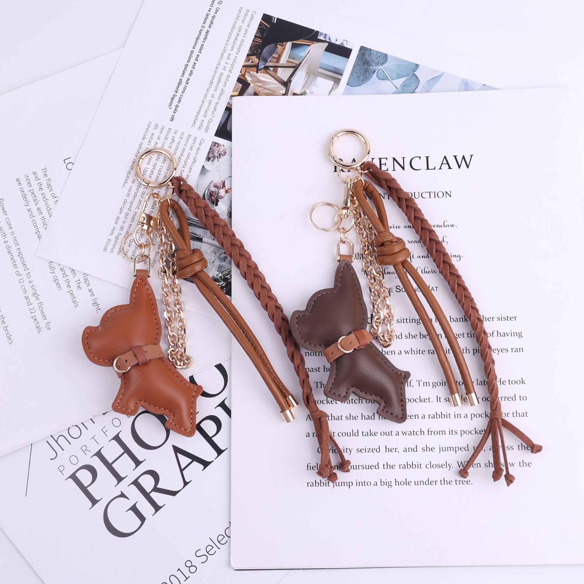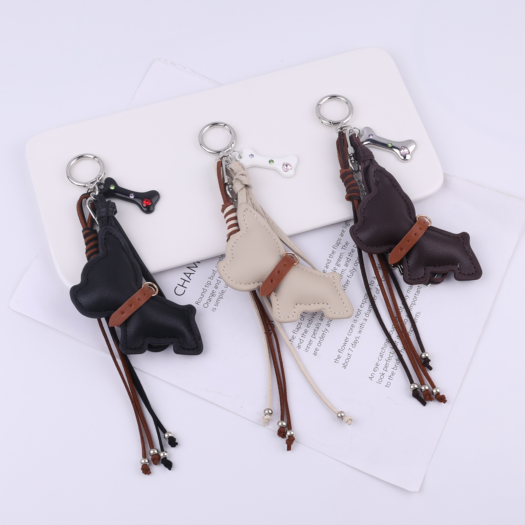 Iu系トレンドレザー子犬キーホルダーインスタ风可爱いスタイリング骨付きハート型カーバッグストラップ