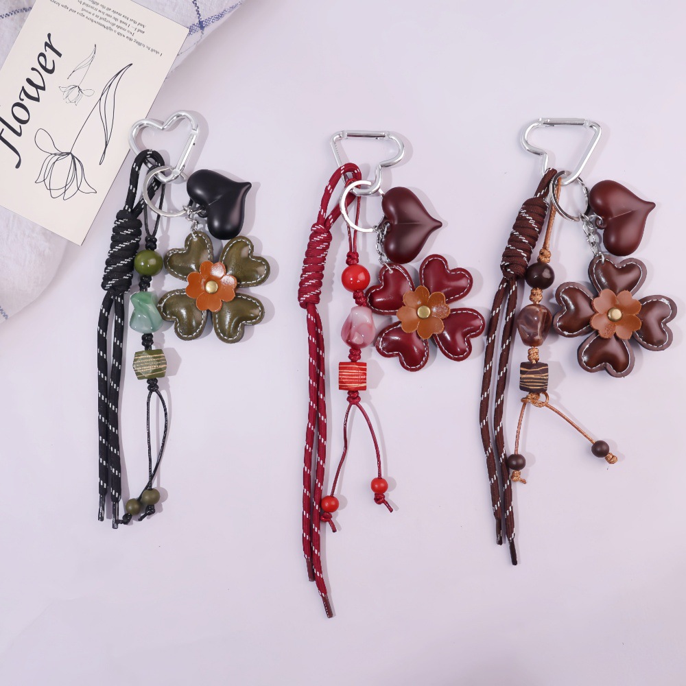 新款四叶草包包挂件爆款miu配件皮质钥匙扣挂件爱心手机壳挂件