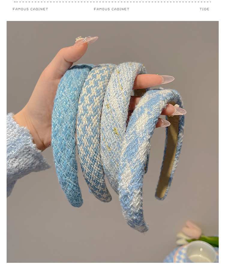 青い系のニットの紋様のカチューシャの女性の高い頭の頂の髪のカチューシャのファッションの百合のヘアピンの滑り止めの髪の束の飾りの秋