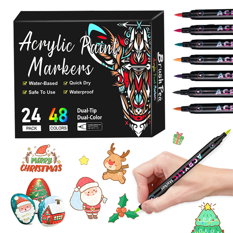 クロスボーダー双頭二色アクリルマーカーペン学生アート落書き絵画文具セット diy 絵画靴積み重ね可能な色