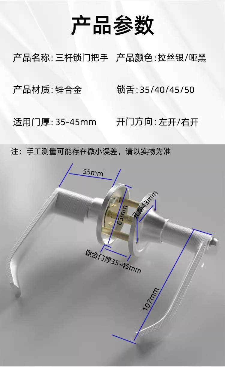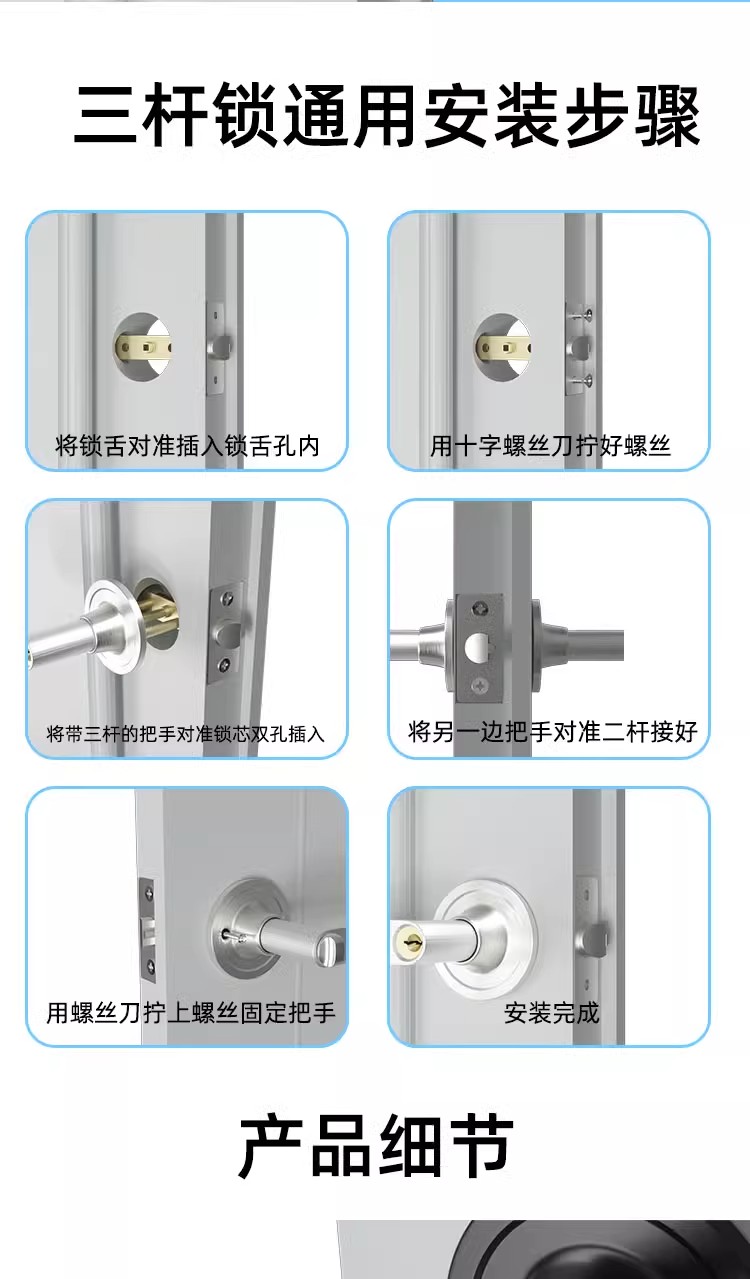 ✅ 3 バーバスルームトイレアルミ合金ドアロック家庭用ユニバーサルドアハンドルハンドルロックキーボール付き