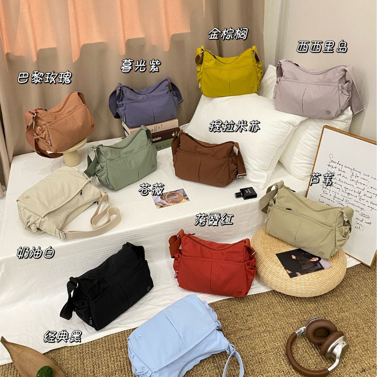2025捷朗仕新款韩版马卡龙色尼龙布包简约旅行出街单肩斜跨尼龙