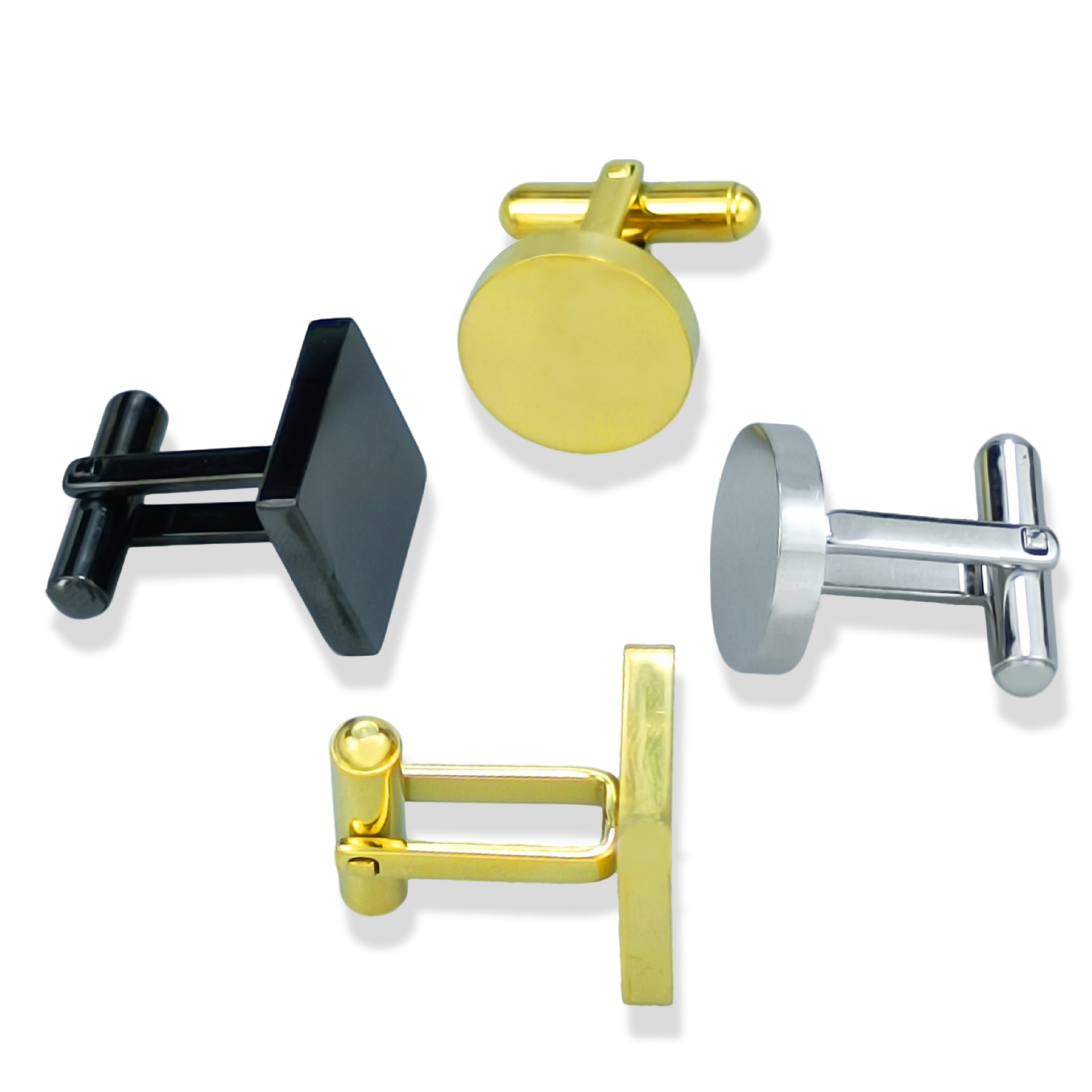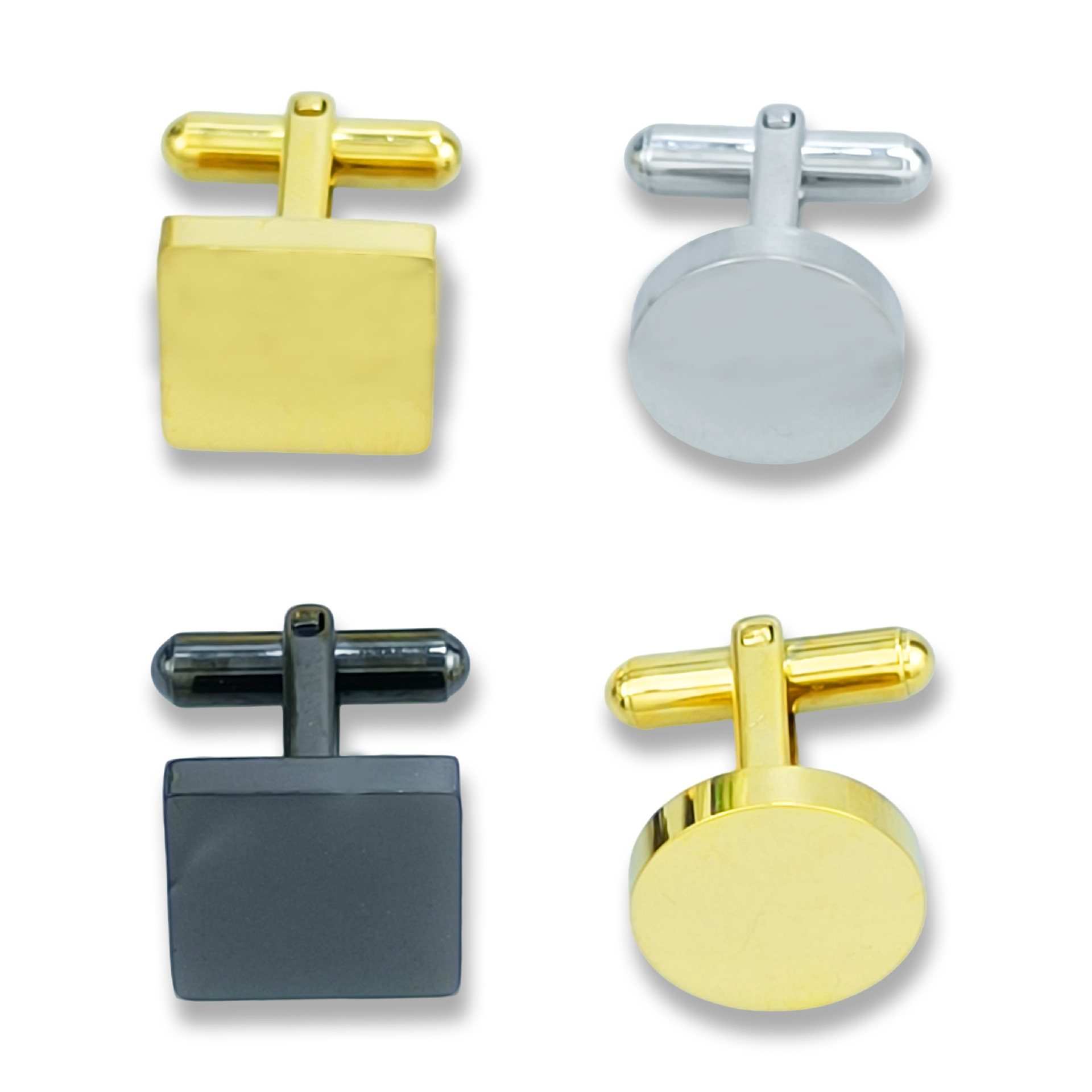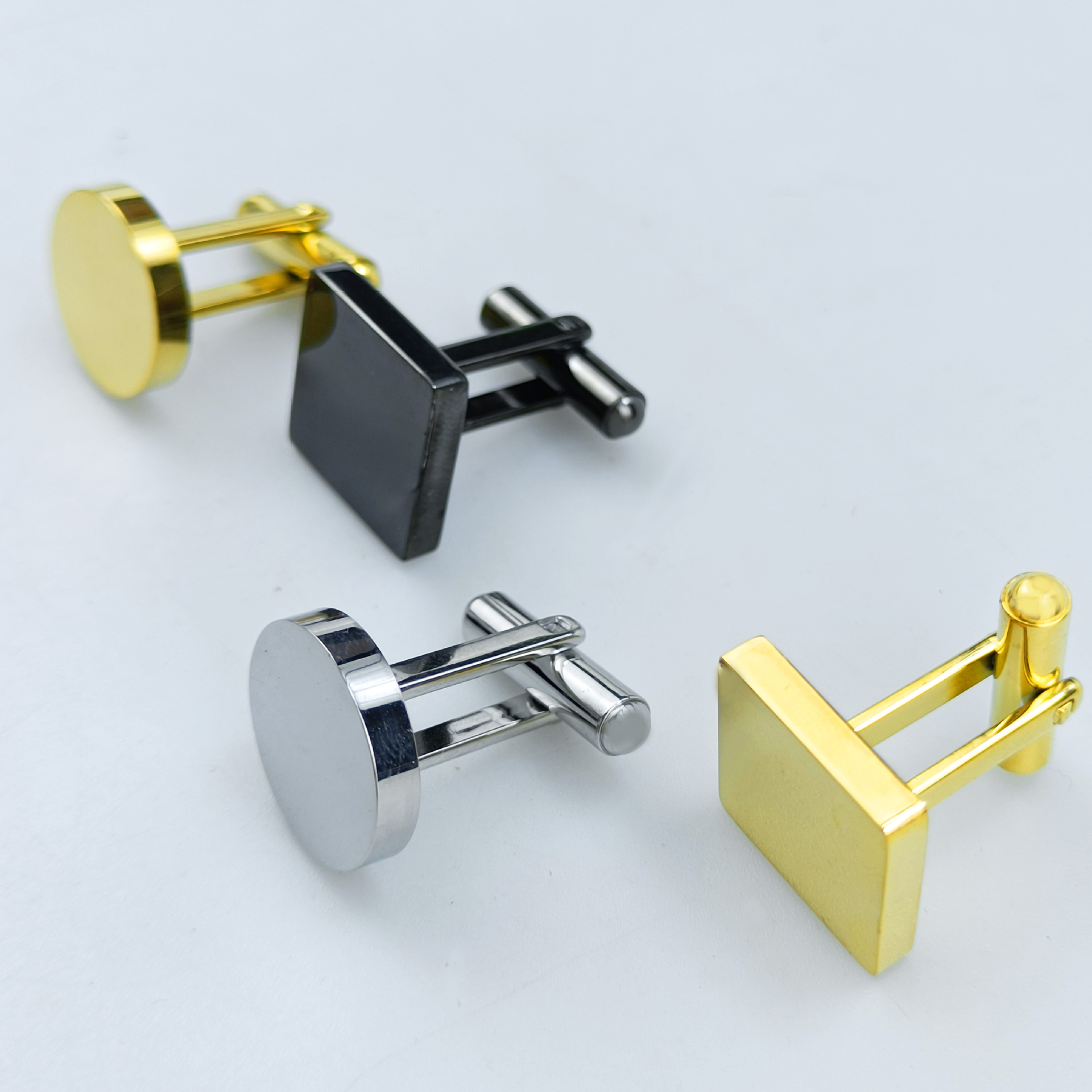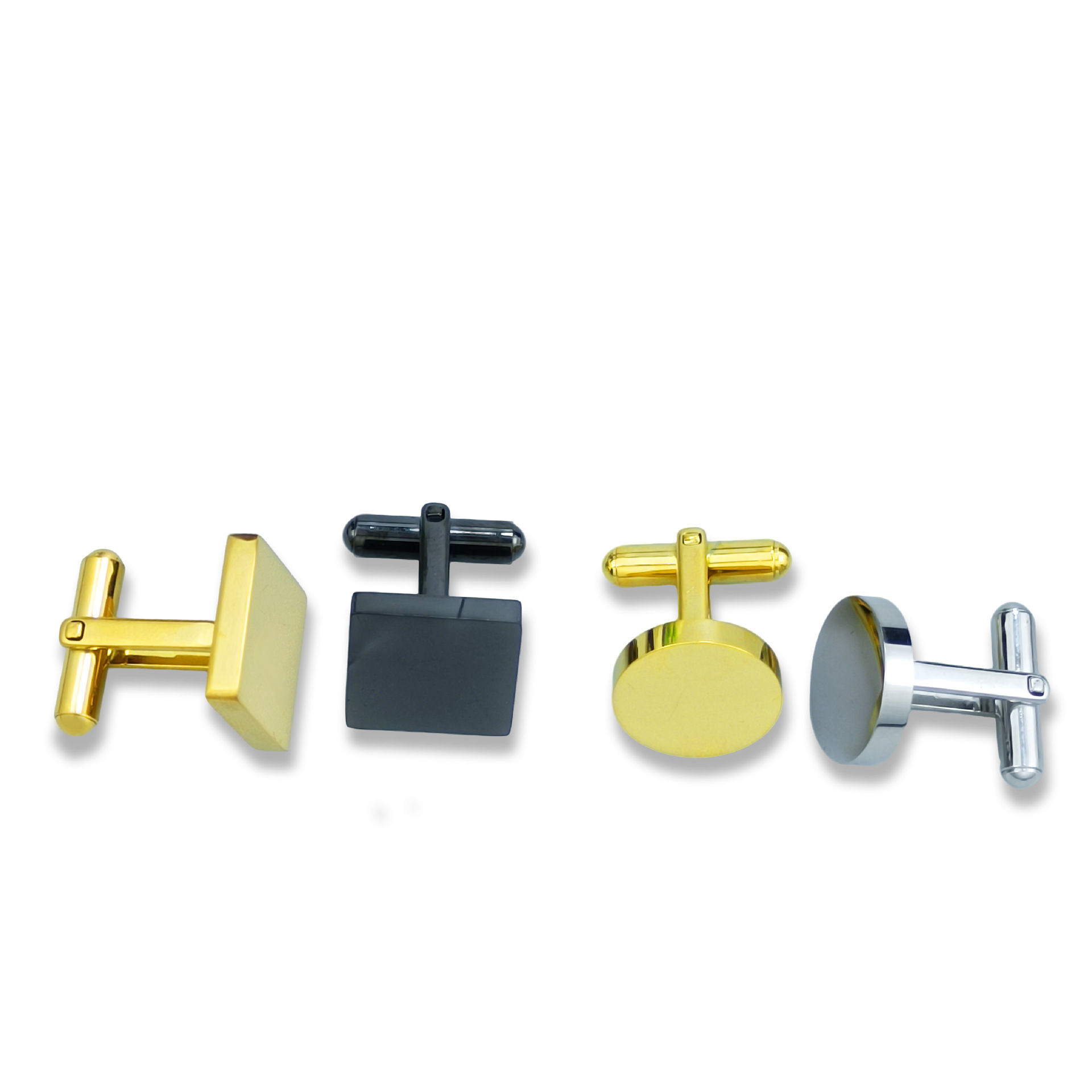 ゴールド ラウンド カフリンクス,ゴールド スクエア カフリンクス,スチールカラーのラウンドカフリンクス,ブラック スクエア カフリンクス