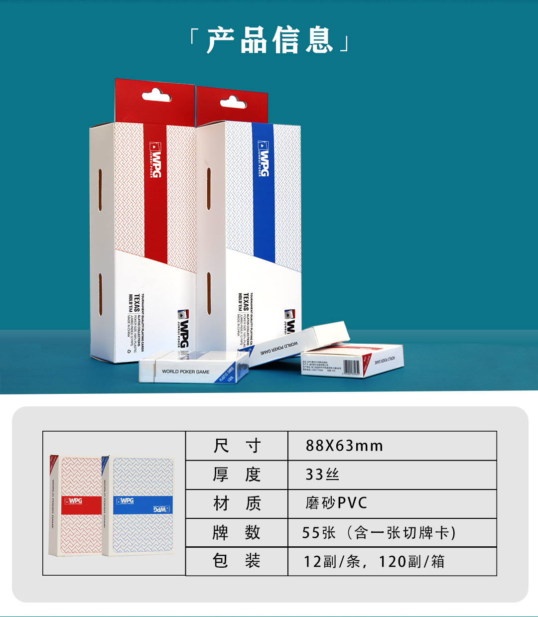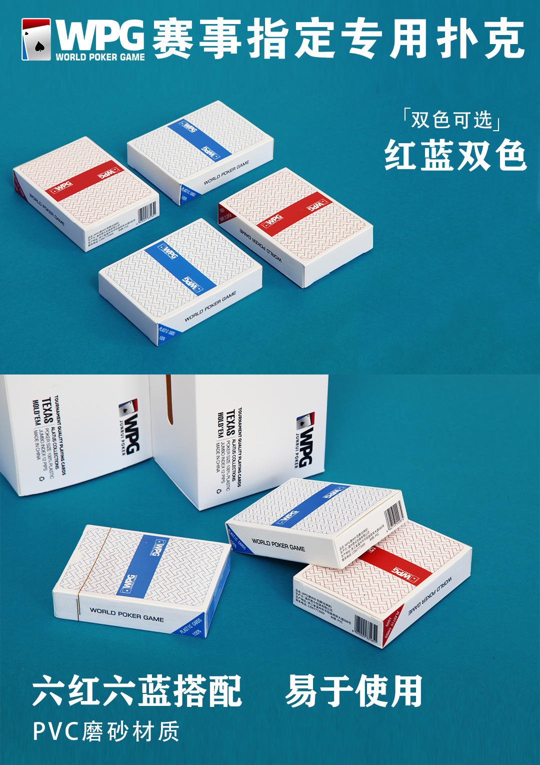 WPT公式試合専用テキサストランプ大書体プラスチックPVCトランプは色落ちしないフロスト防水折り畳み防止
