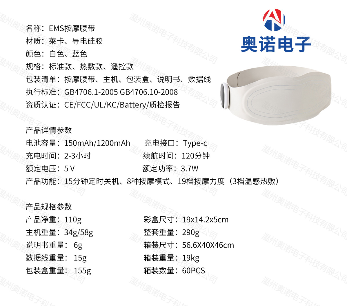 多功能便携EMS微电流腹部腰部微按摩腰带健腹热敷运动燃美全塑仪