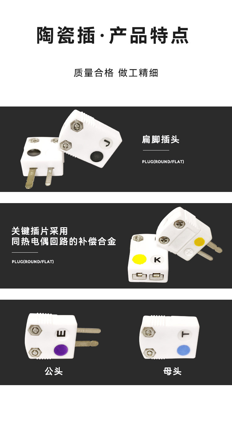 仕様 K型セラミック平型プラグ,K型セラミックフラットソケット,T型セラミック平型プラグ,T型セラミックフラットソケット,J型セラミック平型プラグ,J型セラミックフラットソケット,Eタイプセラミック平型プラグ,Eタイプセラミックフラットソケット