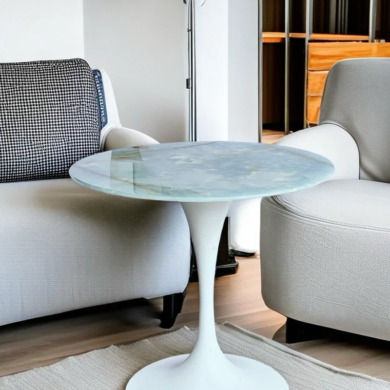 工場直販天然大理石カルセドニーダイニングテーブルライト高級レストランコーヒーテーブルモダンラウンドテーブル大岩板シンプル