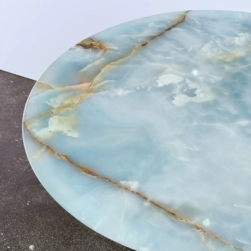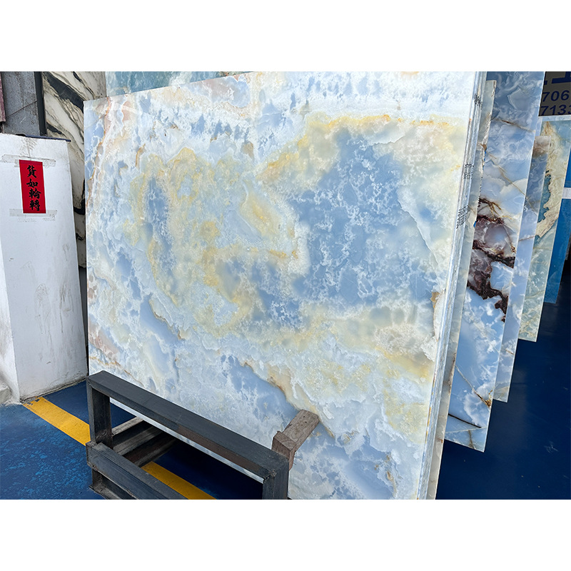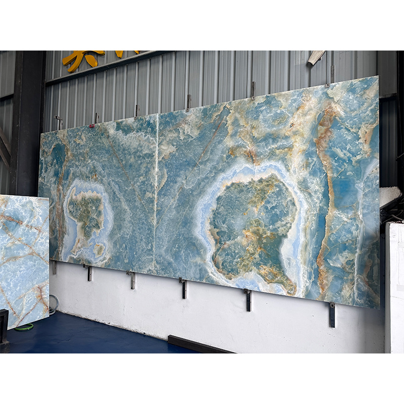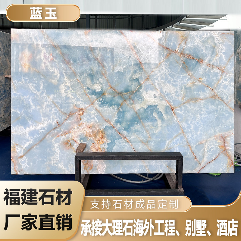 蓝玉透光奢石餐桌台面茶几天然大理石板材别墅入户玄关背景墙批发