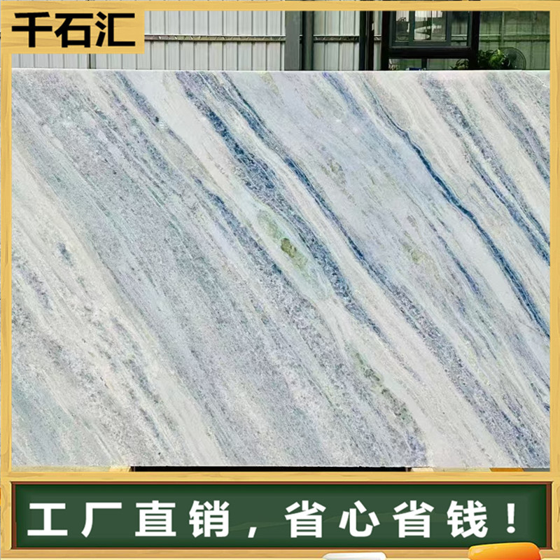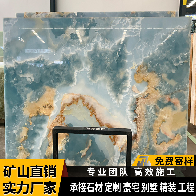 蓝水晶天然大理石餐桌奢石大板透光背景墙玄关台面卫生间别墅装修