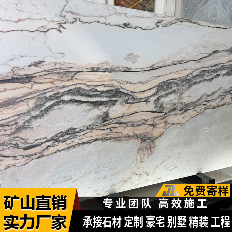 四季粉天然大理石板电视背景墙透光奢石餐桌楼梯石材酒店餐厅吧台