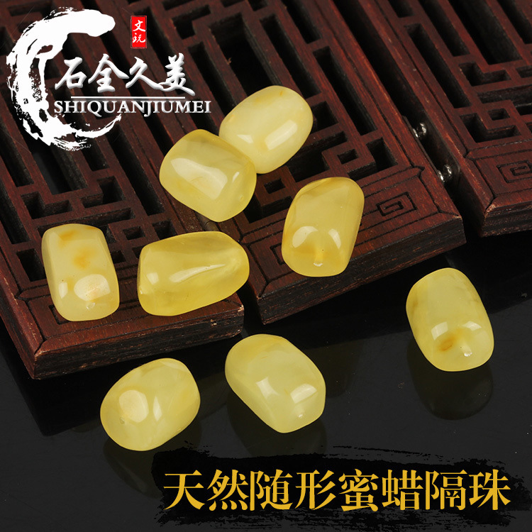 天然随形蜜ろう隔珠鶏油黄蜜桶珠散珠diyブレスレット手串アクセサリー星月菩提部品