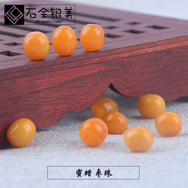 天然琥珀老蜜蜡枣珠桶珠腰珠顶珠108佛珠星月菩提金刚手串diy配饰