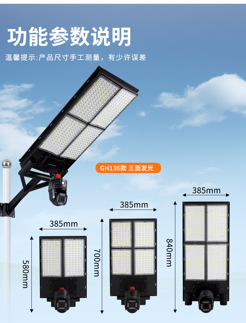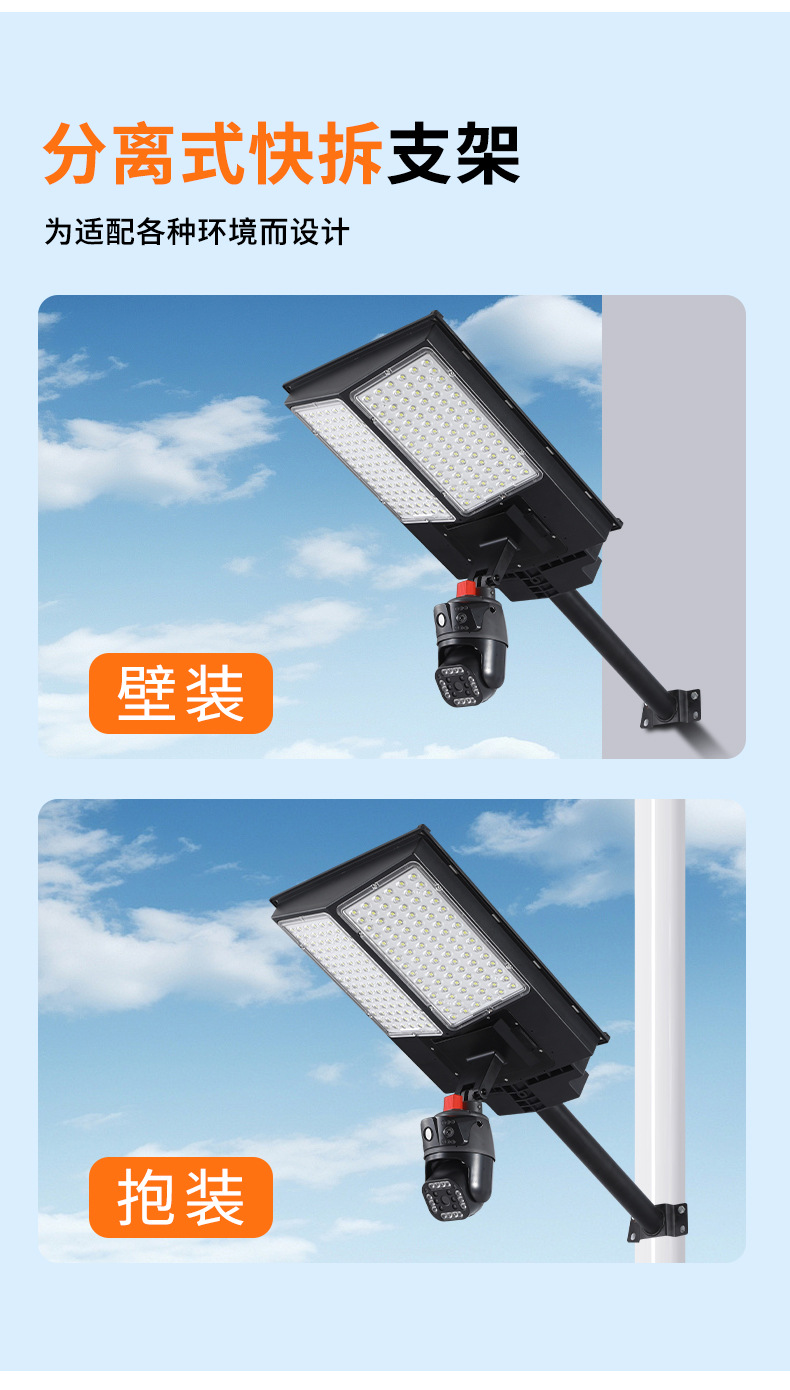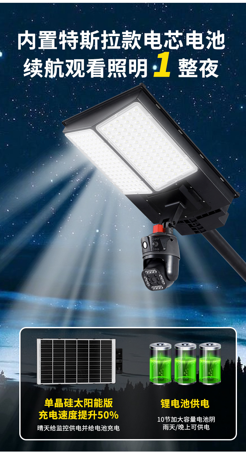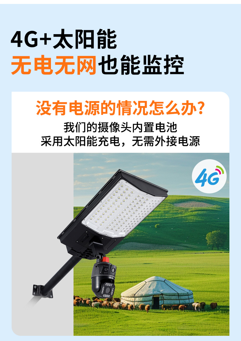 led太阳能监控摄像头路灯户外太阳能庭院灯防水WiFi摄像头4G监控
