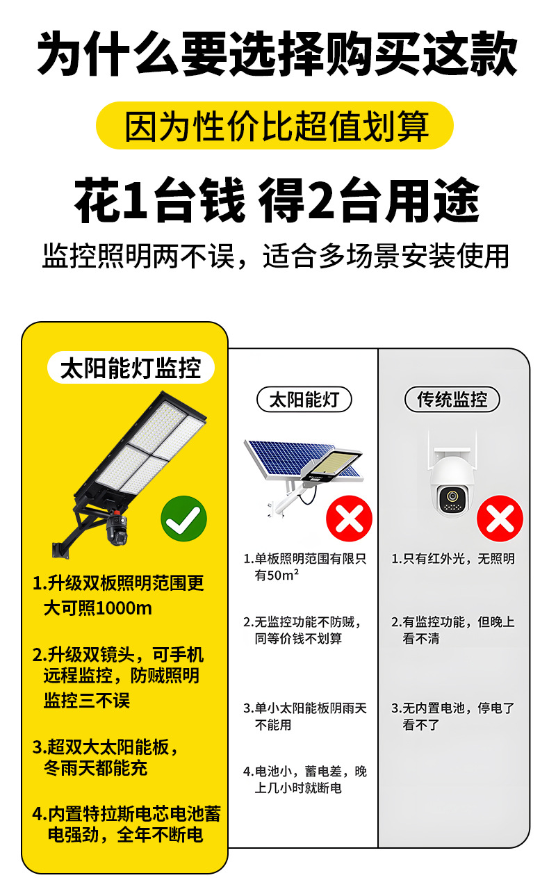 监控摄像头一体化太阳能路灯led户外超亮照明灯防水小区安防路灯