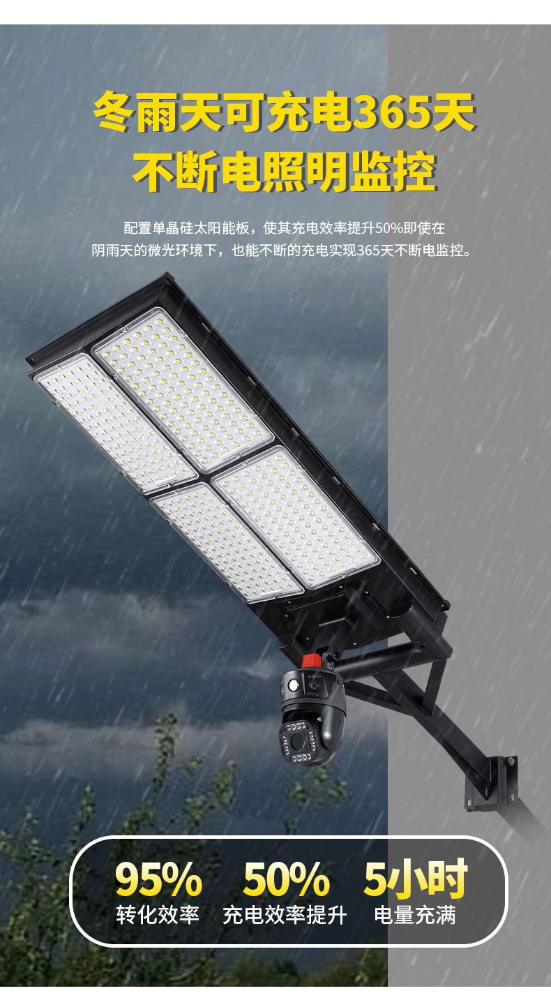 跨境太阳能监控路灯带摄像头太阳能户外照明灯一体化路灯带4Gwifi