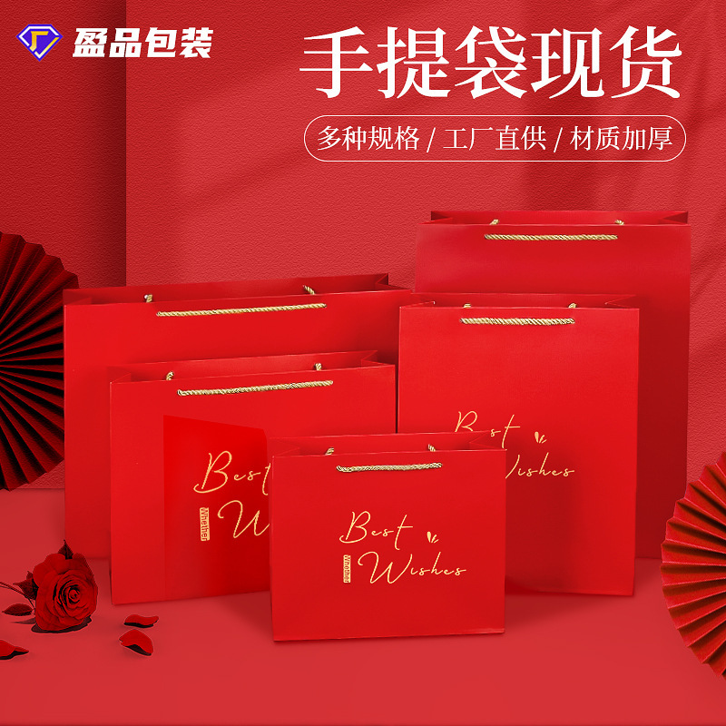赤いハンドバッグ在庫卸売厚い紙袋衣類包装袋ギフトハンドバッグお土産赤い紙袋