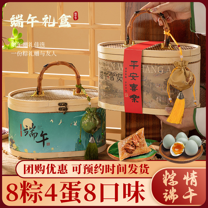 2025新款端午节粽子礼盒咸鸭蛋肉粽端午节送礼国风手提竹篮礼品盒