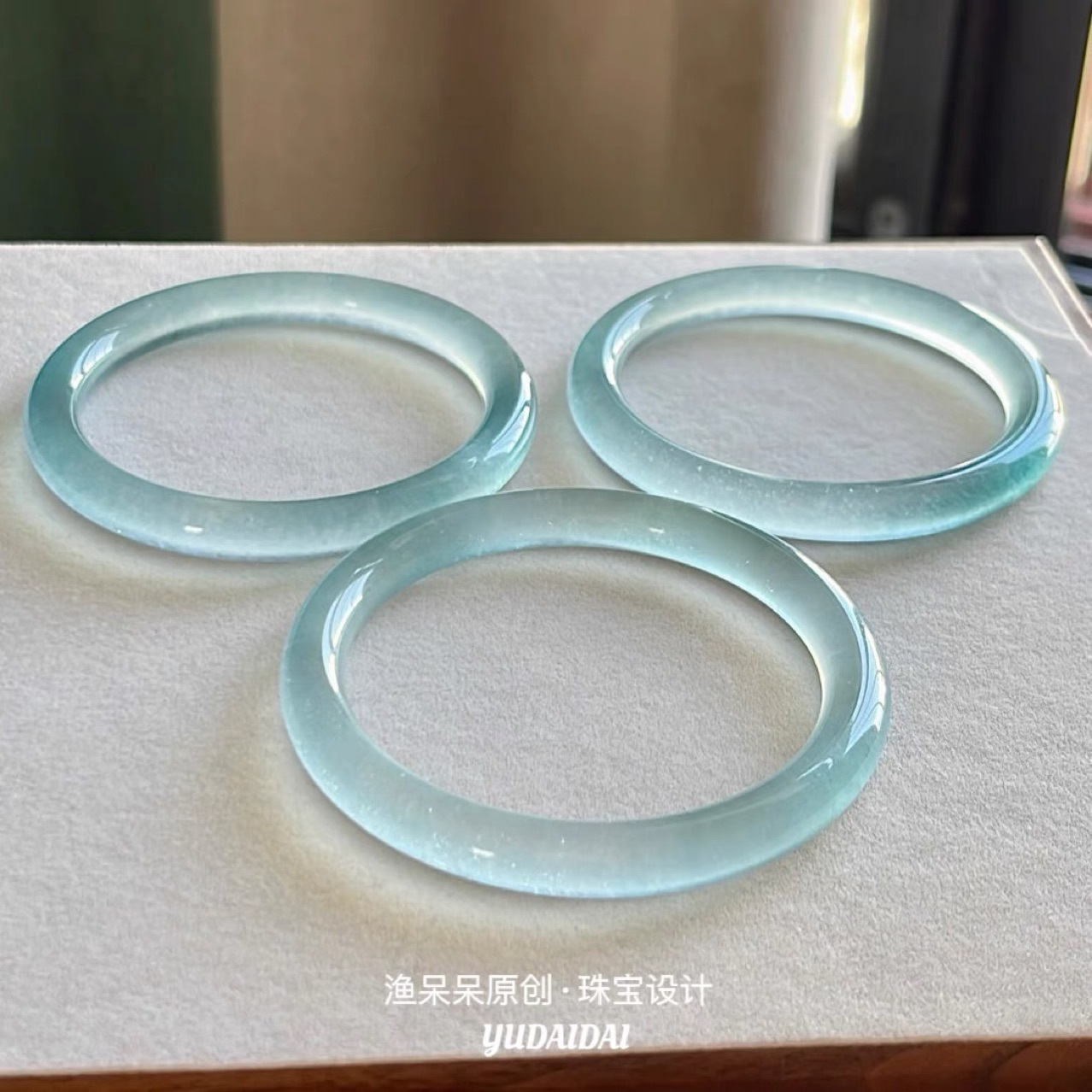 メーカー卸売ライトカラーアイス透明アベンチュリンクリアウォーターカラーフラットバングルスカイブルー凍結ライトグリーンラウンドバージェイドブレスレット