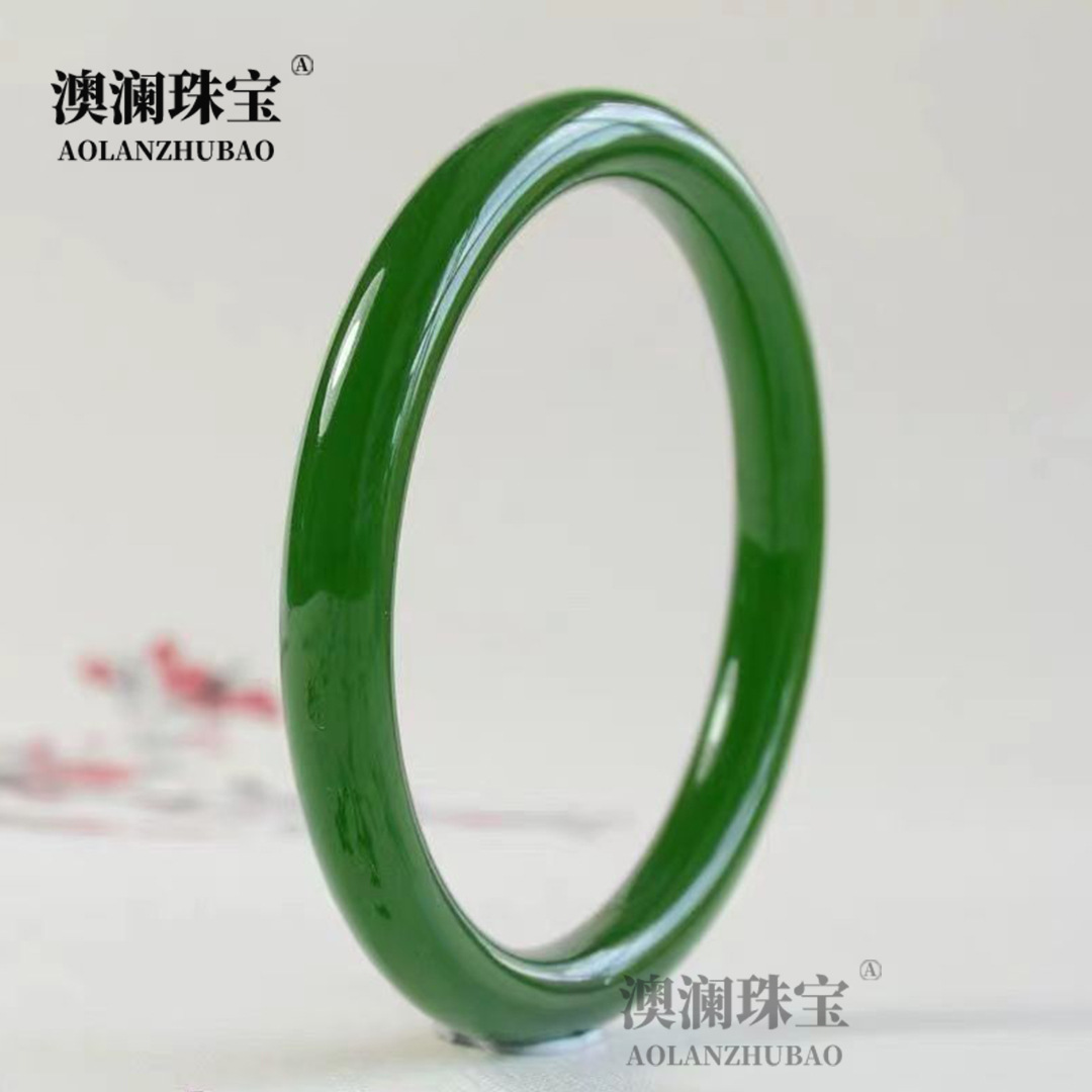 卸売外モンゴル素材ホータン碧玉ブレスレットほうれん草グリーンラウンドバーレディースブレスレット細いバーチームシアンビューティー翡翠ブレスレット