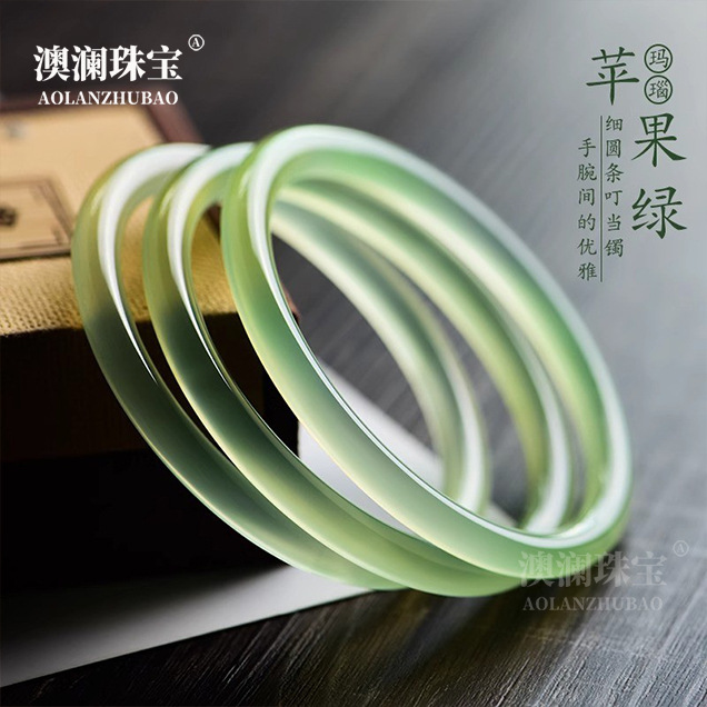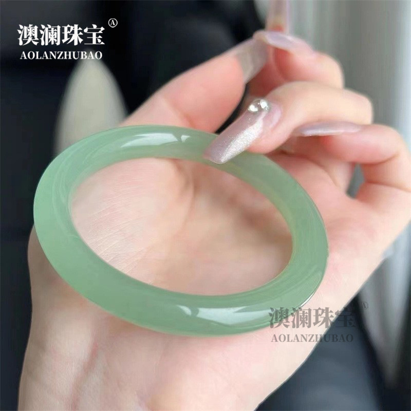 オイルグリーンアゲートジングルブレスレットレディースグリーンアップルカルセドニーアイス透明ライチゼリー細いラウンドバーブレスレットハイエンドガーリー