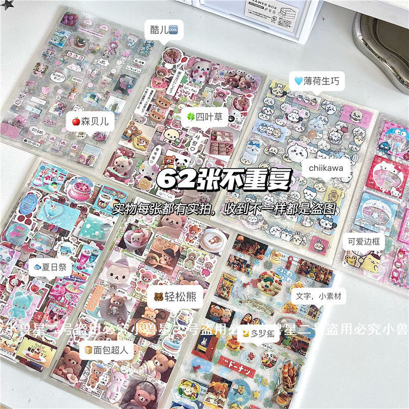 62枚の非繰り返しカットフィルムステッカー センベル四つ葉キティ リラックマ トマト 古風ステッカー