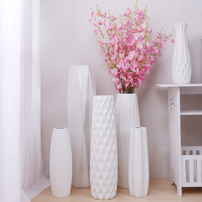 セラミック床置き大型花瓶大型白高モダンシンプルクリエイティブリビングルーム水栽培ドライフラワーフラワーアレンジメント装飾装飾品