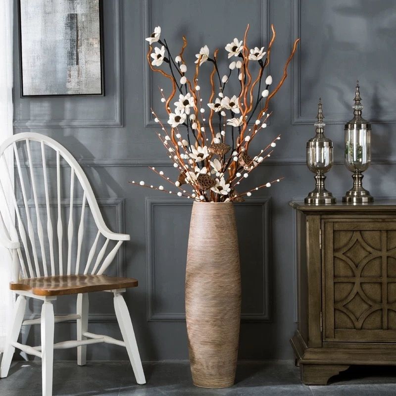 新型超大花瓶置物客間生け花レトロ着地創意民宿水培樹皮シンプル葦花